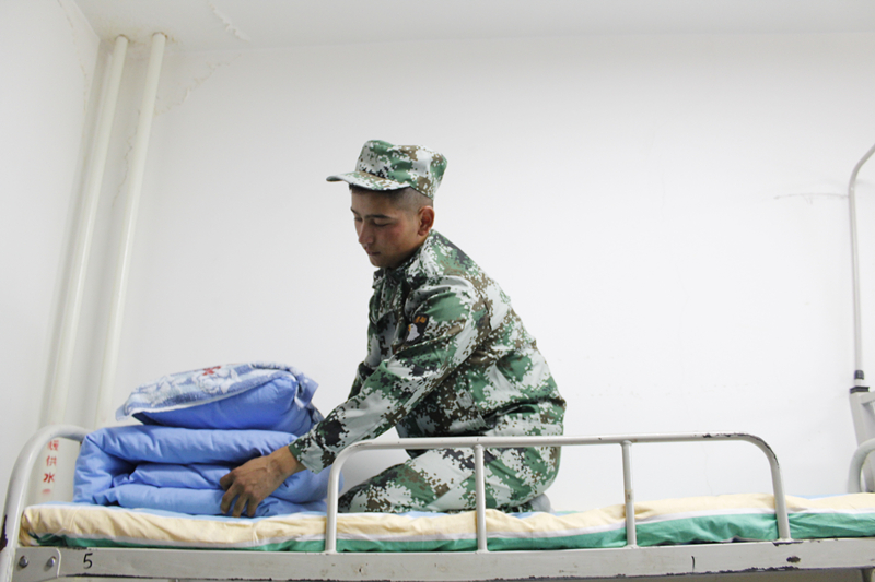 9月10日各连教官进入到学生公寓,指导学生进行内务整理。在活动中,二连的教官负责指导18级新生如何叠被子,他说:“整理内务注重的是细节,毛巾要叠两次放在脸盆边上,鞋要放整齐、成直线摆放,地面要整洁,决不能留卫生死角。”在整个讲解过程中,新生们都积极主动、认真练习。