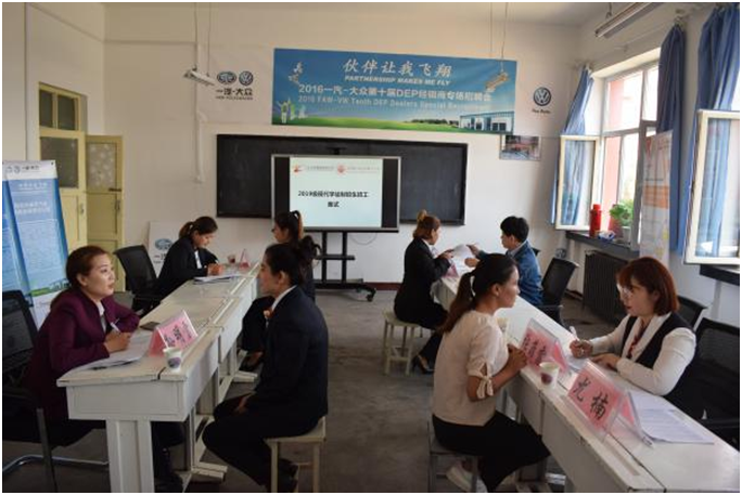 11日下午,由来自新疆天汇汽车服务有限公司旗下的6位人力资源管理工作人员组成的面试团,对我院132位报名考生进行了面试选拔。