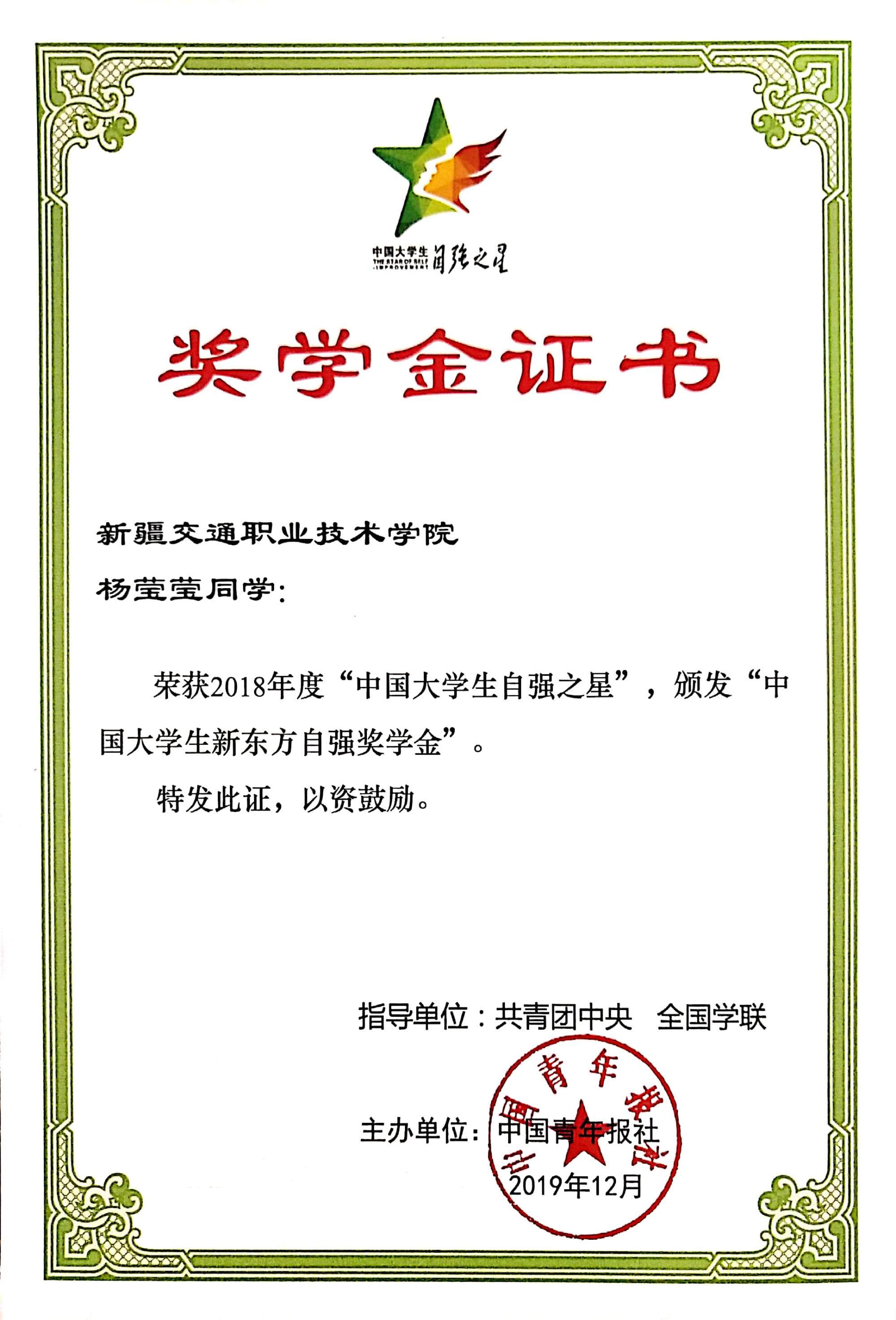 经各高校推荐、省级初评、全国评审等环节,活动评比结果近日揭晓,我院杨莹莹同学获得“中国大学生自强之星”奖。