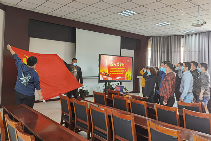 活动结束前全体党员在支部书记的带领下手握右拳,高举耳侧,凝视着鲜红的党旗,重温了入党誓词,回顾了入党初心,铭记了铮铮誓言。