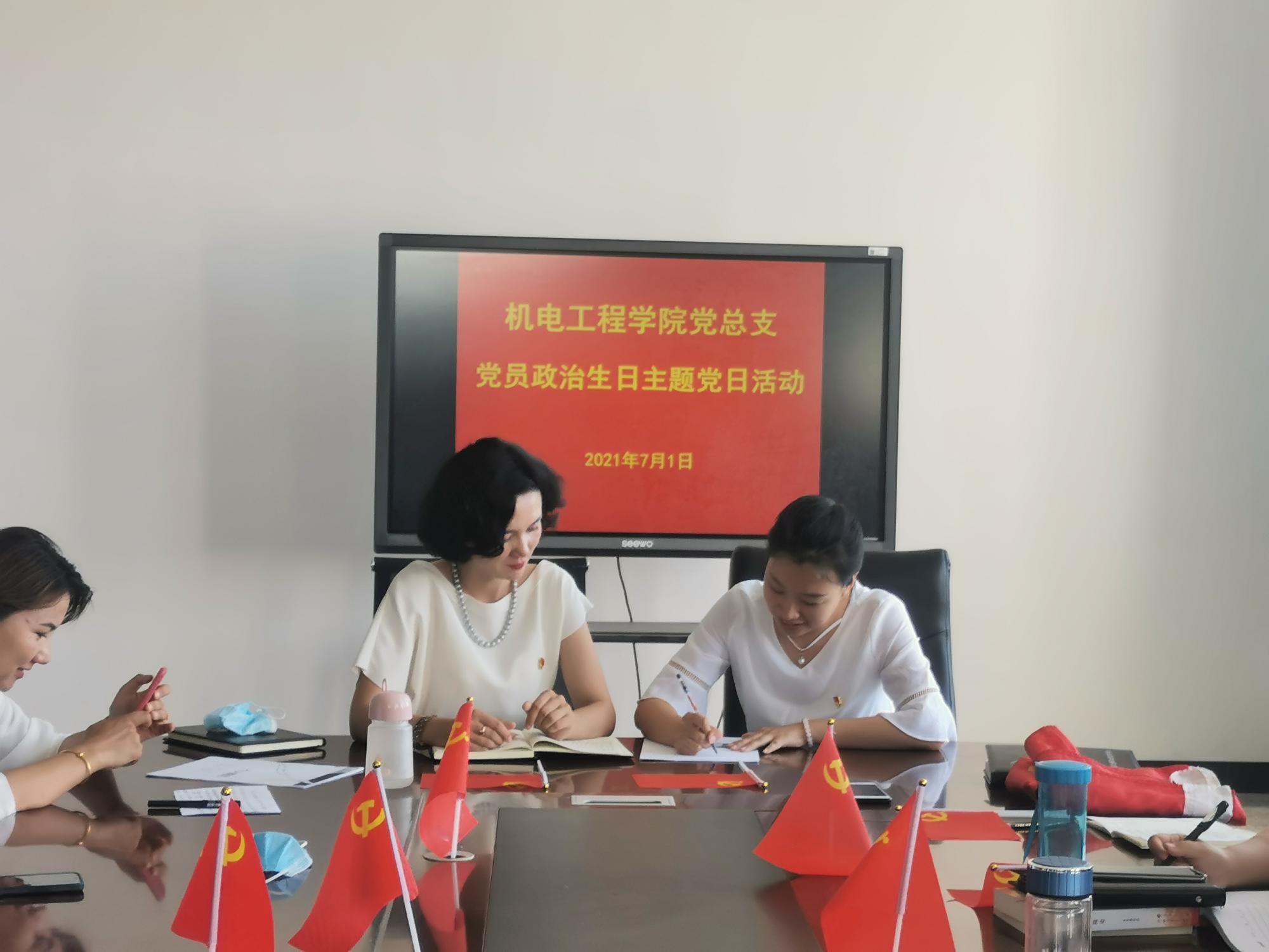 在中国共产党建党100周年之际,为进一步强化党员干部的初心使命,机电工程学院党总支开展为6月、7月入党的党员教师过“政治生日”、交纳党费主题党日活动。