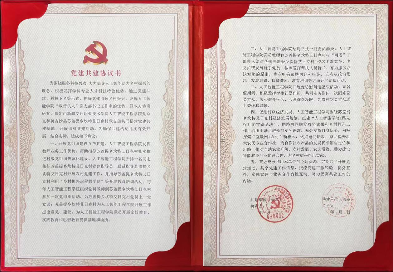 去年9月以来,按照“面向需求、精准对接”的原则,新疆交通职业技术学院人工智能工程学院党总支与英吉沙县苏盖提乡坎特艾日克村党总支共同签署了党建共建协议,建立了党建共建基地,利用人工智能工程学院学科和师资优势,在党组织建设互帮共建,依托共建党支部,成立远程教育基地,为村民提供信息化的培训,助力建设智能农业产业化的联合体,进一步助力乡村振兴。