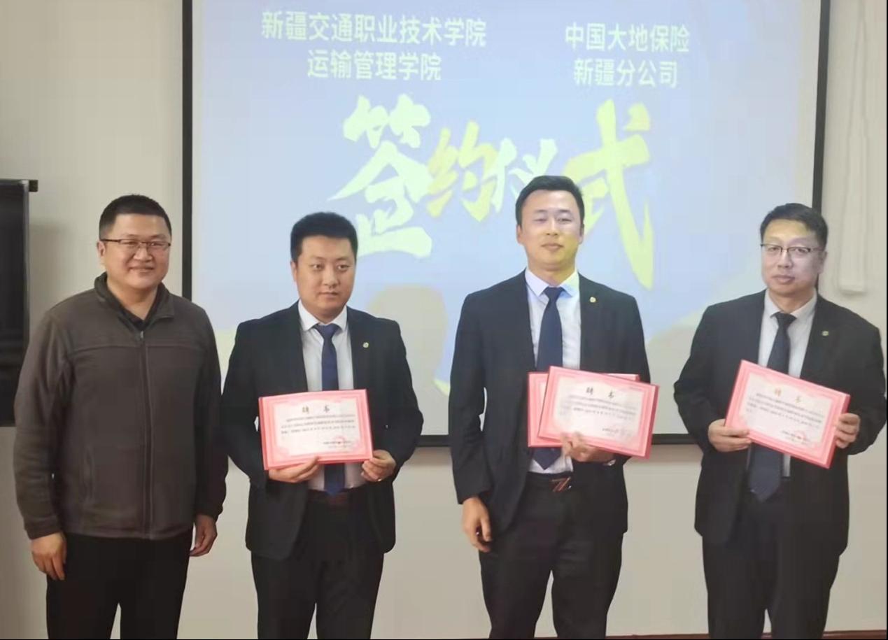 4月21日,运输管理学院与中国大地财产保险股份有限公司新疆分公司进行了校企合作签约仪式暨校外实训基地挂牌仪式。