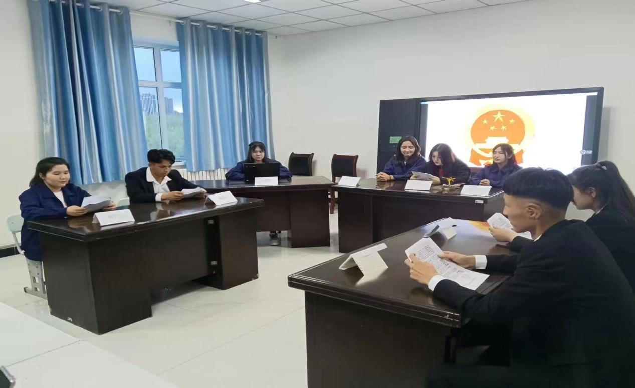 4月28号马克思主义学院明法谨思普法社在一号教学楼四楼法律工作室开展“知律法于心,守法律于行”主题模拟法庭庭审活动。