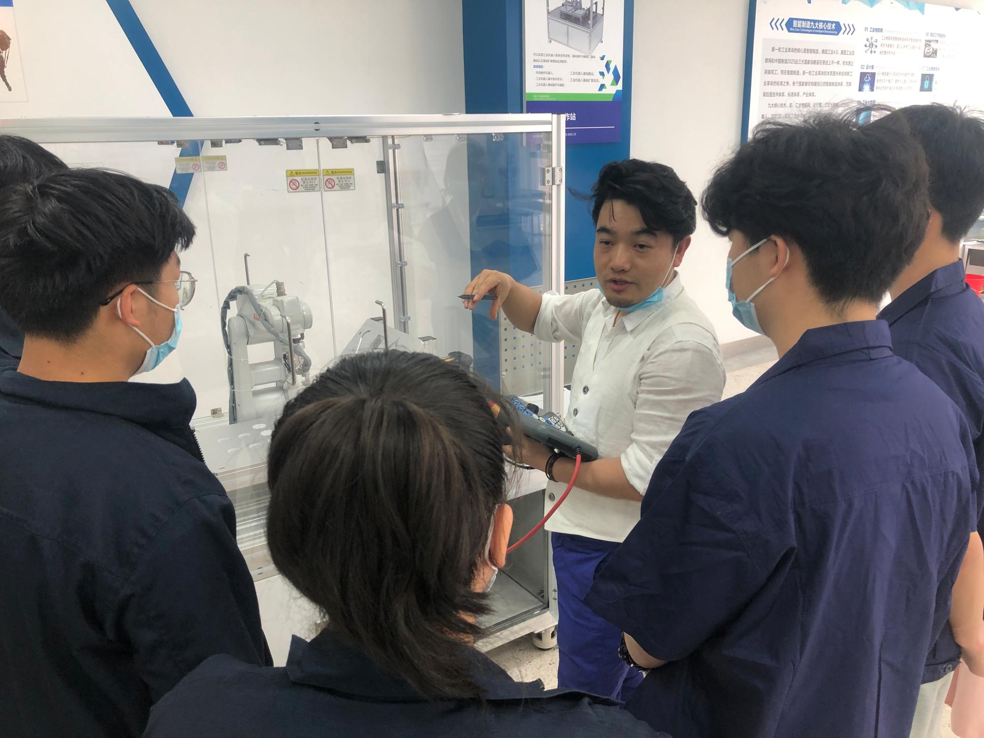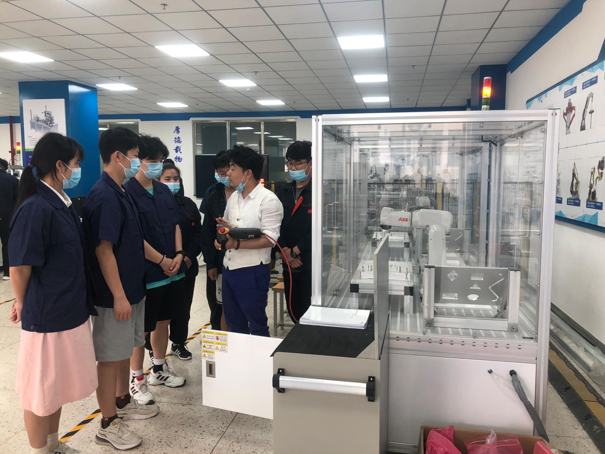 活动中,全国职业技能大赛智能电梯运行与维护竞赛项目的指导老师和选手向在场同学们展示了智能电梯的运行电路及维护过程;机电一体化竞赛项目的同学向在场同学们展示了自动化生产线的安装与调试过程;在工业机器人技术实训室中,工业机器人技术赛项的同学们展示了工业机器人的编程与运行。同学们还参观了车站控制实训室、综合演练实训室、中高级电工实训室等,了解了分院实训室功能和工作内容。