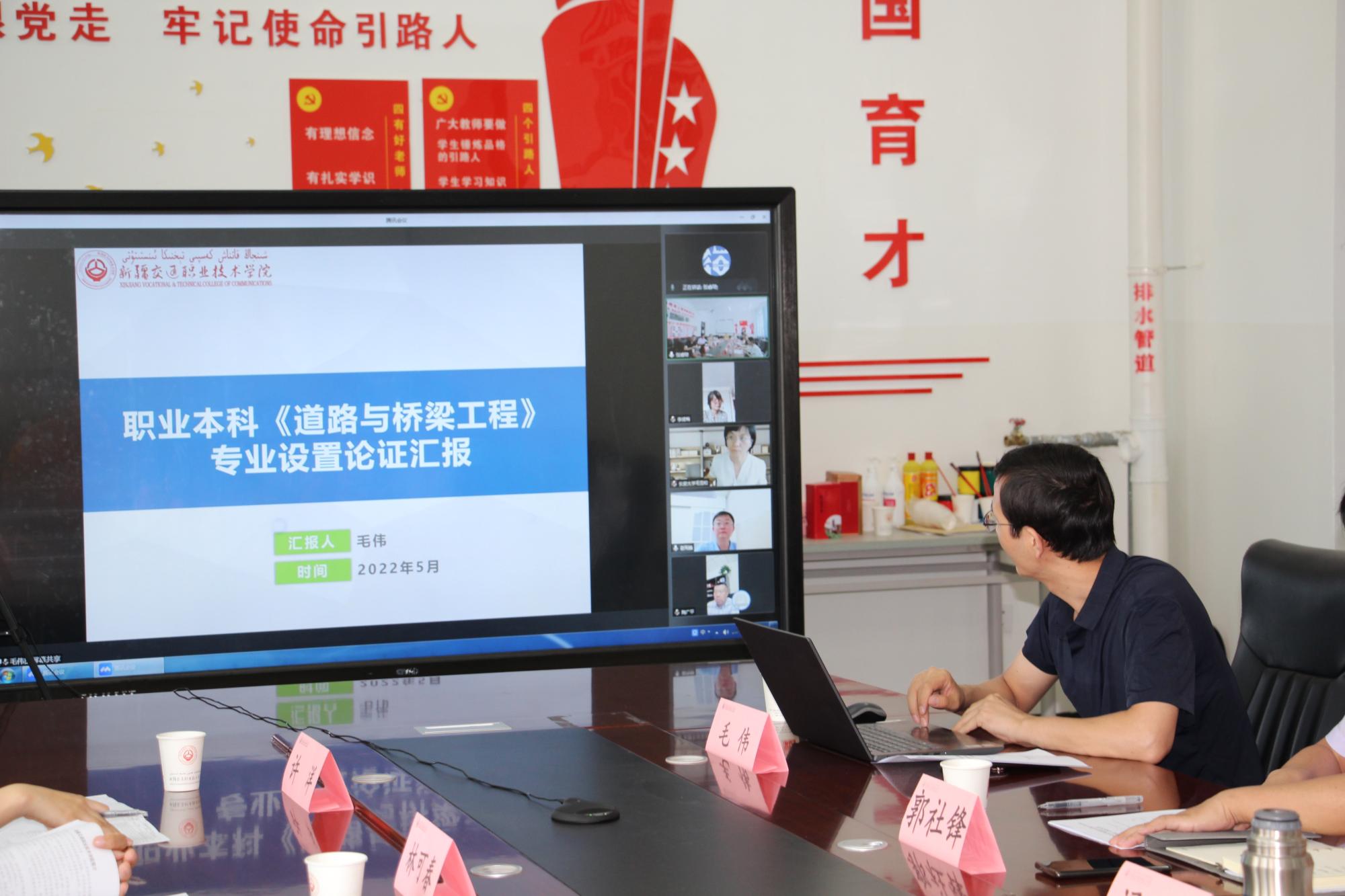 道路与桥梁工程专业建设指导委员会主任新疆大学(国家重点实验室主任兼新疆交建集团首席科学家)黄勇教授及专业建设指导委员会委员长安大学公路学院毛雪松教授、新疆农业大学交通与物流工程学院院长谢海巍教授、新疆交通规划勘察设计研究院有限公司副总工孙建民、新疆新路公路养护集团有限责任公司技术总工陶广平、新疆交通职业技术学院学术委员会主任李绪梅教授等参加了论证会,同时教务处副处长林可春及专业建设团队成员列席会议。