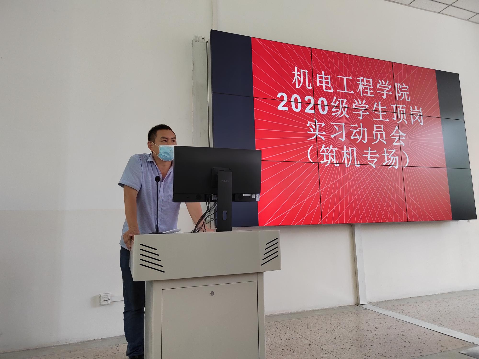 为做好疫情防控形势下学生顶岗实习工作,为更好的做好2020级顶岗实习学生相关工作安排,机电工程学院按照各专业分批次召开顶岗实习动员会。5月29日,机电工程学院在学院学术报告厅召开了筑路机械专业的顶岗实习动员会。