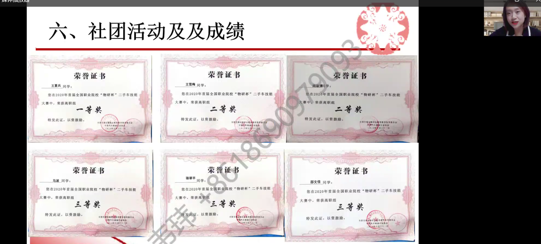 本次会议邀请了2021届毕业生杨辉辉同学,目前该生通过专升本考试进入了本科就读,会上他向2022级新生分享了专科升本科的经验与感受;教务处王化楠老师就专升本考试政策与考试内容进行了讲解与补充,为2022级新生的学业规划方向提供了更完备的参考;会议连线了2020级汽销D201班学生李敏、吴润,她们分享了岗位实习的经历与薪资待遇,为2022级新生讲述了岗位实习的内容与感受,让2022级新生对职业教育有了全新的认识;专业负责人刘文静老师就汽车营销服务社团特色与汽销专业大赛获奖情况也做了逐一说明,邀请2022级新生加入丰富多彩的社团活动中来。