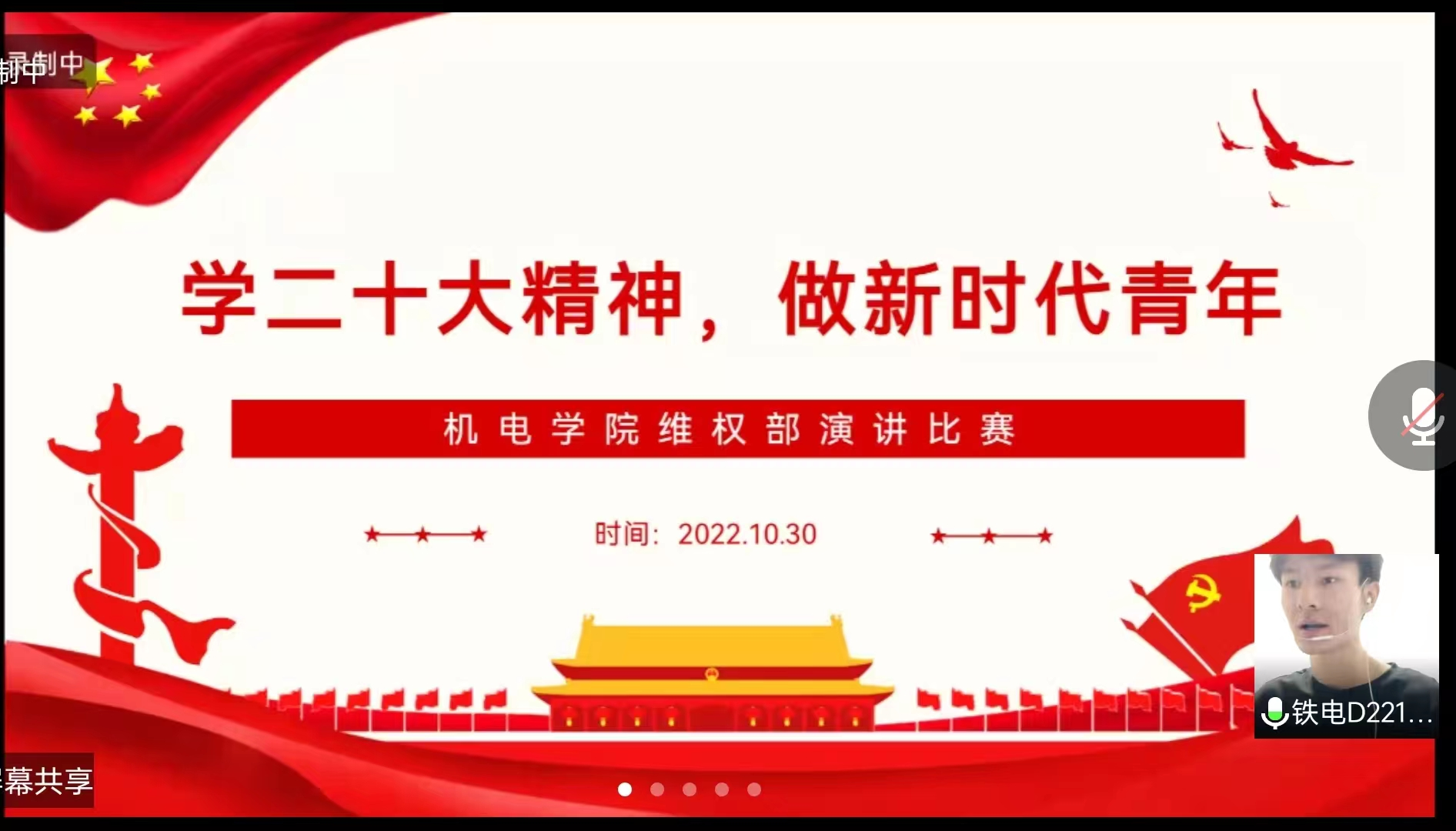 青春心向党,奋进新征程。10月30日,机电工程学院辅导员工作室举行学习党的二十大精神演讲比赛,掀起深入学习宣传贯彻党的二十大精神热潮。