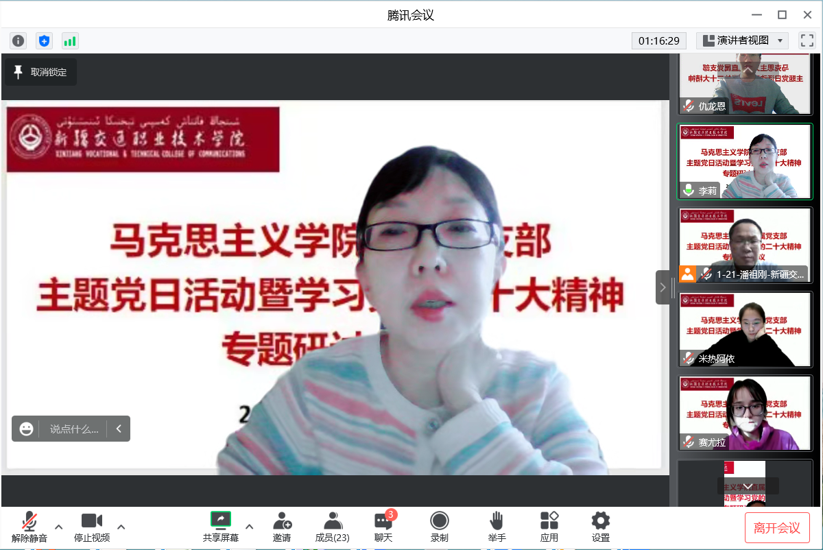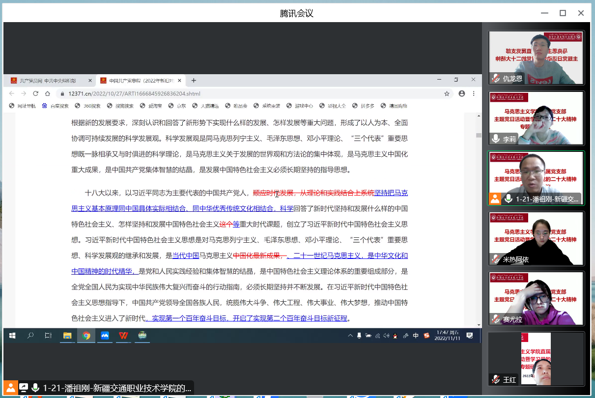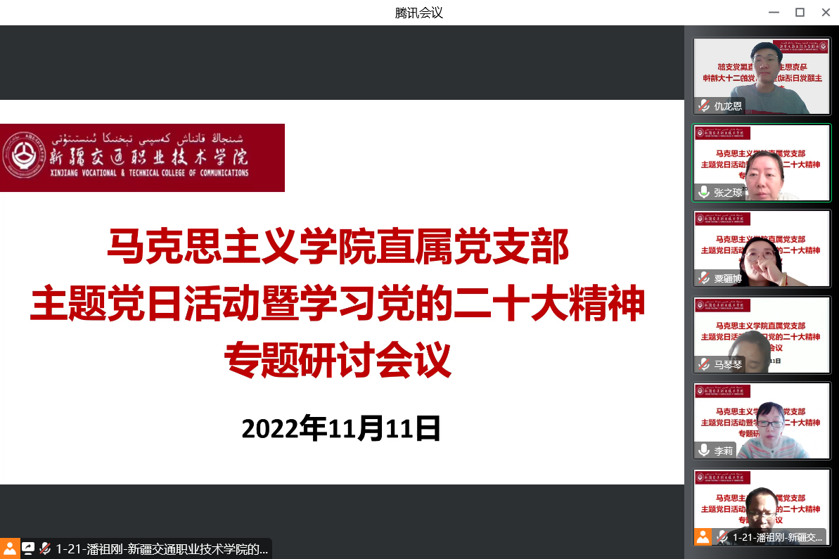 11月11日下午,马克思主义学院直属党支部通过腾讯线上会议,开展了主题党日活动暨学习党的二十大精神专题研讨。