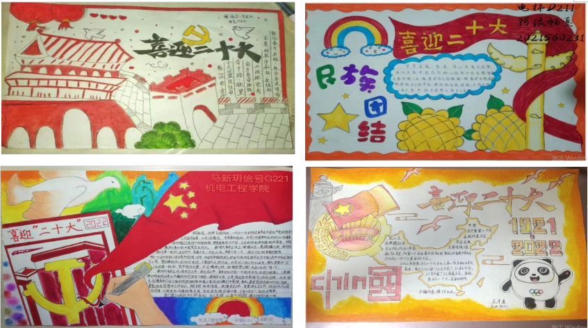 会后,同学们展示了以“点赞我的国,二十大精神我知道”为主题的手抄报,以实际行动表达对祖国的美好祝愿。
