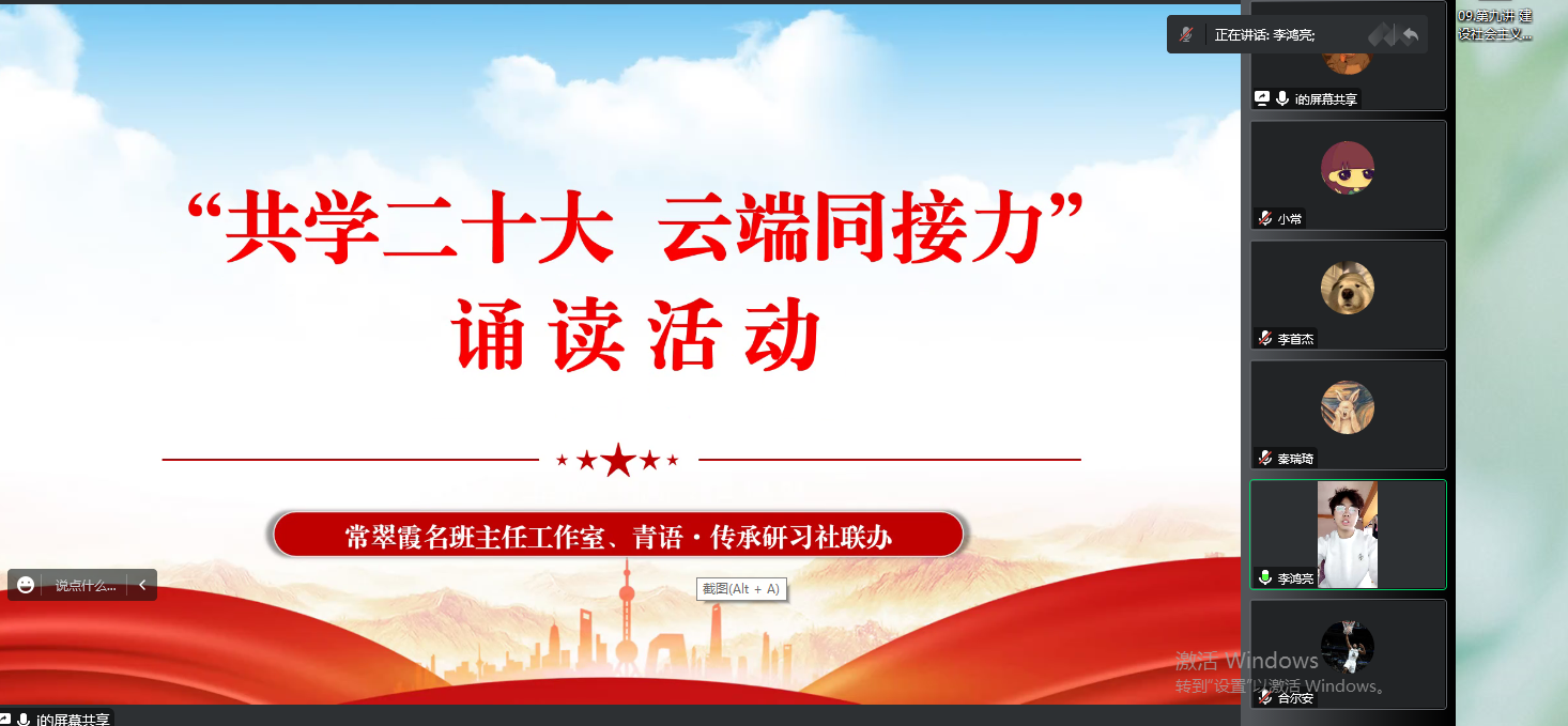 常翠霞名班主任工作室与青语·传承研习社联合开展“共学二十大 云端同接力”诵读活动