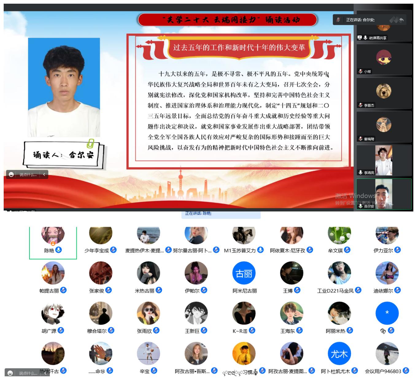 11月20日,常翠霞名班主任工作室与青语·传承研习社联合开展“共学二十大 云端同接力”诵读活动,营造出“人人学报告、读报告、悟报告”的浓厚氛围,真正把学习成果转化为奋进新征程、建功新时代的强大动力。