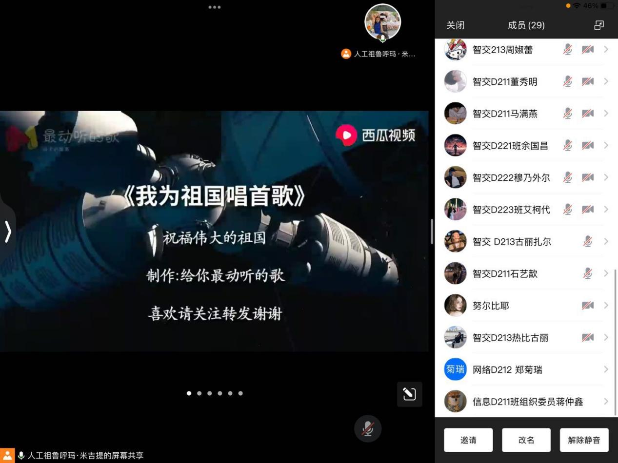 活动伊始,由各班团支书进行爱国歌曲展播,以“一二 • 九”纪念日为契机,广泛发动学生传唱爱国歌曲。随后,由祖鲁呼玛老师组织同学们观看红色纪录片——北平以北。影片以主人公白乙化为代表的一二九学运骨干和以段苏权为代表工农红军,在民族危亡的时刻挺身而出,胸怀民族大义和家国担当,高举青春战旗,深入敌人的心脏虎口拔牙,依据党的建设、武装斗争、统一战线三大法宝,在平北建立基层人民政权、建立抗敌军分区司令部,带领平北人民英勇抗战。