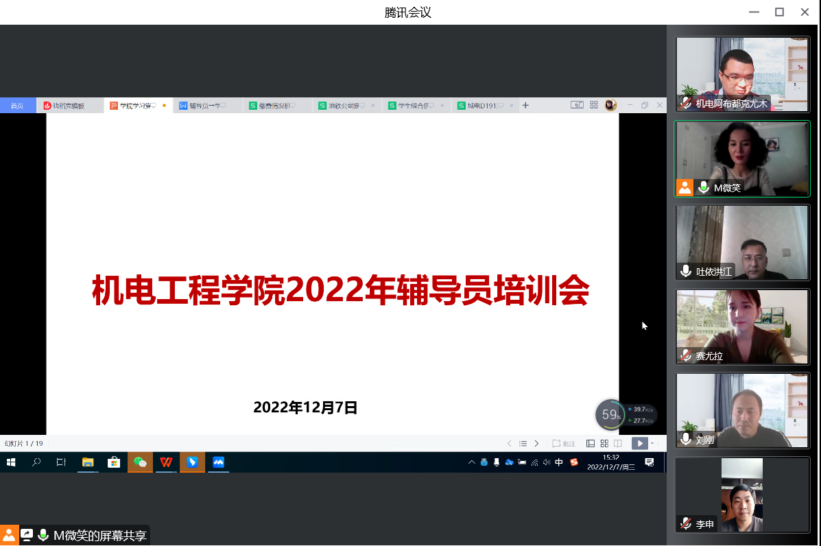为落实立德树人根本任务,深化辅导员对职业角色和岗位职责的系统认知,提升分院辅导员工作专业水平,12月7日下午,机电工程学院“明思”德育辅导员工作室开展了2022年度辅导员培训会,分院党总支副书记刘刚主持本次会议。