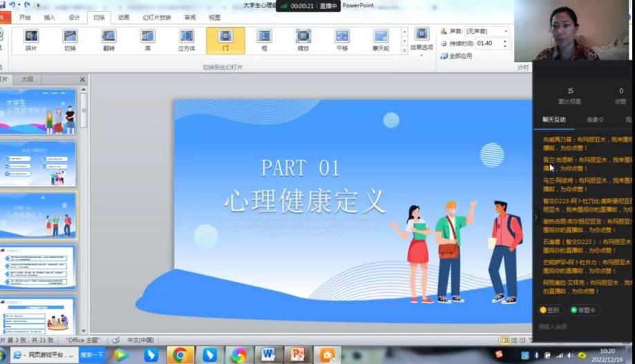 12月16日,学院代菲菲名班主任工作室组织开展了大学生性健康教育系列活动。活动以线上形式开展,智交D221班全体学生参会了本次活动。