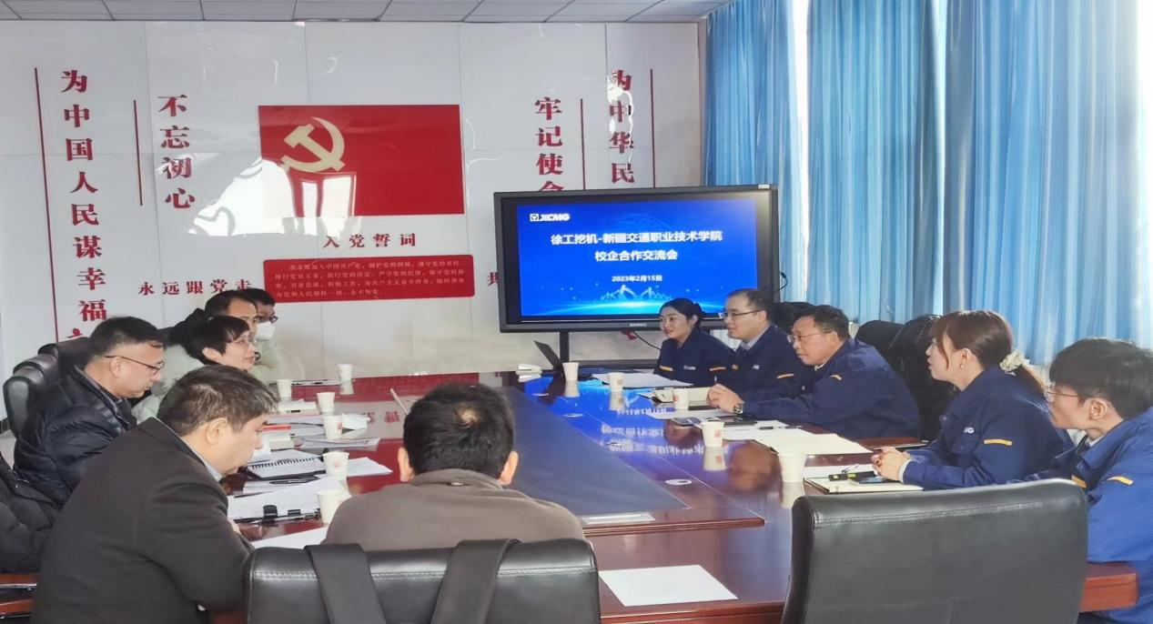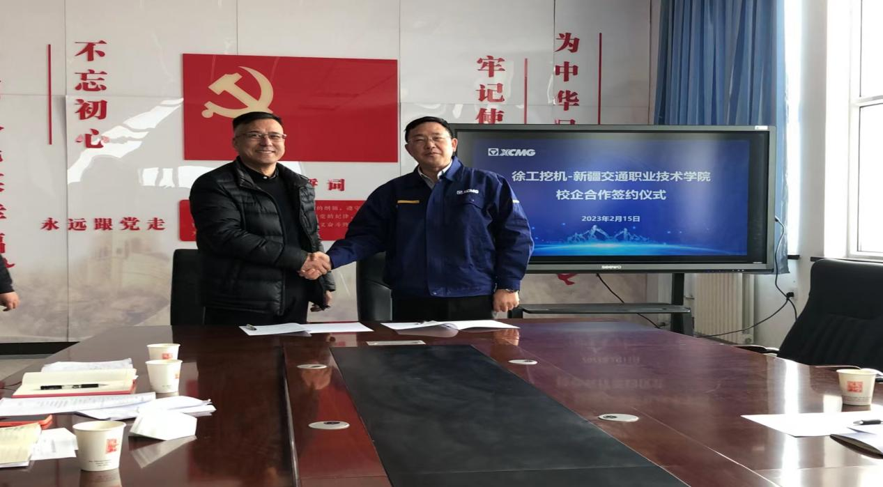 会上,机电工程学院党总支副书记吐依洪江·肉孜对雷启明总经理等一行人的到来表示欢迎,他介绍了机电工程学院总体情况,对智能工程机械运用技术专业的学生培养情况、毕业生规模、学生就业等情况作了详细介绍。雷启明讲解了徐州徐工挖掘机械有限公司的发展历程、企业发展规划、生产经营、人才需求等情况。双方就校企双方协同育人、产教融合、教师流动站、建设定点班、职业技能培训等多方面进行了讨论并达成共识,现场签订了校企战略合作协议。
