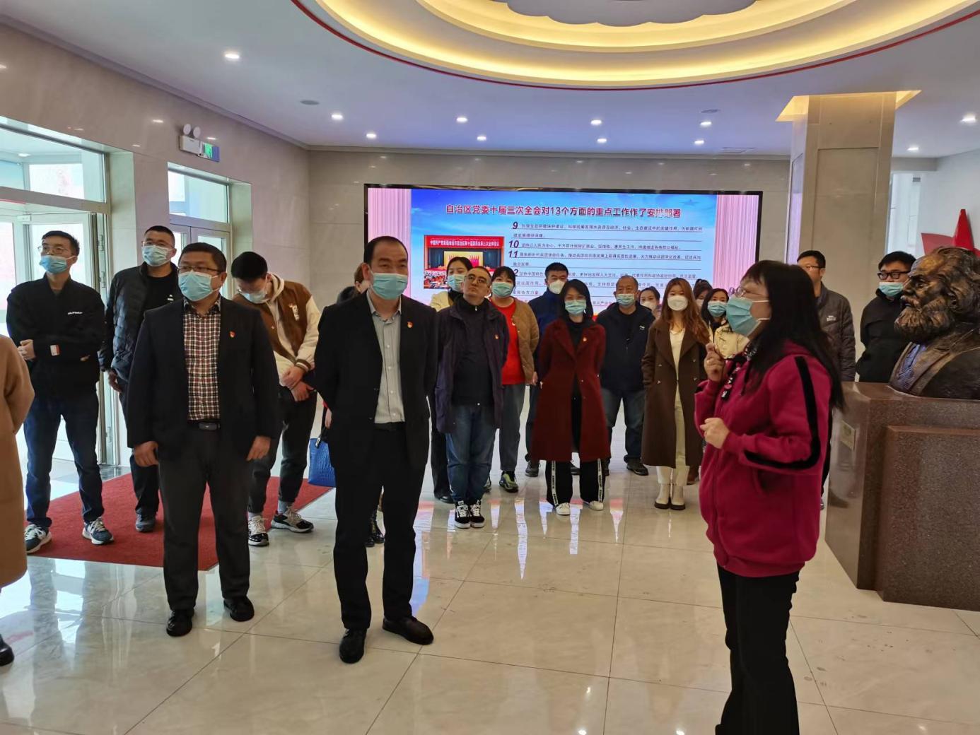活动中,在马克思主义学院李莉院长的引领下,参观了基地的主题文化厅、中国共产党党史馆、新中国史馆、中国精神馆、铸牢中华民族共同体意识馆等8个主题文化馆和虚拟仿真思政教学体验中心。在讲解员的讲解下,全体师生认真聆听,或驻足凝视,感受革命先辈为党的发展、国家富强、人民幸福生活付出的艰辛以及作出的伟大贡献。