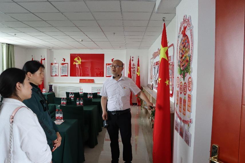 在企业管理总监臧成虎陪同下,教师先后调研参观了公司“新飞一号”物流中心党员示范岗、企业党建长廊、党员活动中心,深入了解新疆九州通医药集团股份有限公司党支部基于非公有制企业党建工作实际,创新“五个引领”为核心要素的党建工作模型、“三四五”党建工作法,以“十二种精神”作为党建工作抓手,高质量党建推动企业高质量发展。物流管理党支部书记王烽峦作了题为《扎实推动主题教育 为奋进新征程凝心聚力》专题党课。