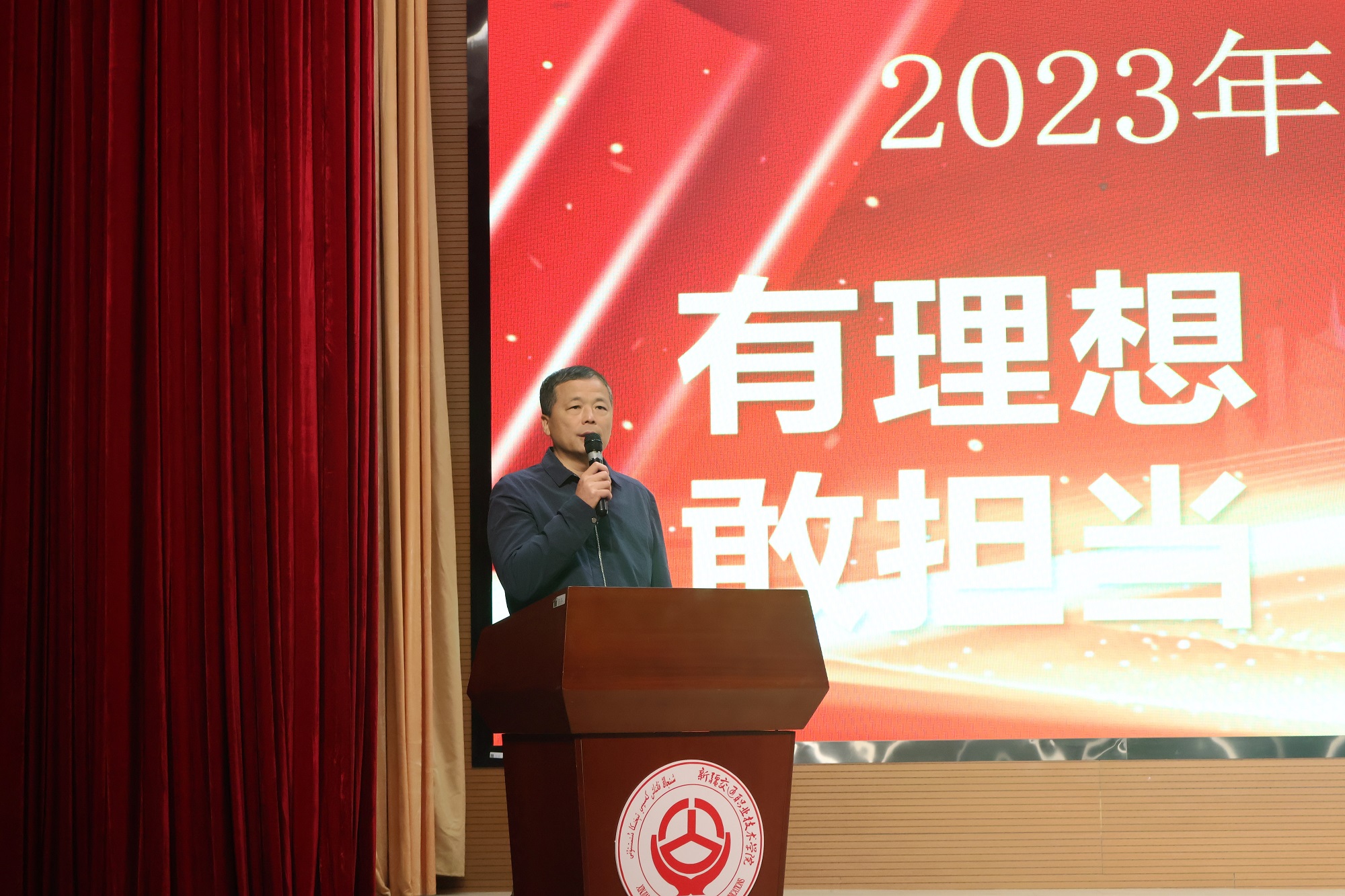 大会分为两个阶段进行。第一阶段汽车工程学院党总支书记阿布拉江·麦麦提为2022级各班班主任颁发了班主任聘书;汽车工程学院党总支副书记、院长侯晓民作了岗位实习动员讲话;汽车工程学院副书记、副院长董静为国家励志奖学金和自治区人民政府励志奖学金获得者同学颁发了荣誉证书;相关专业教师进行了毕业论文撰写及答辩指导讲座、顶岗实习注意事项说明。