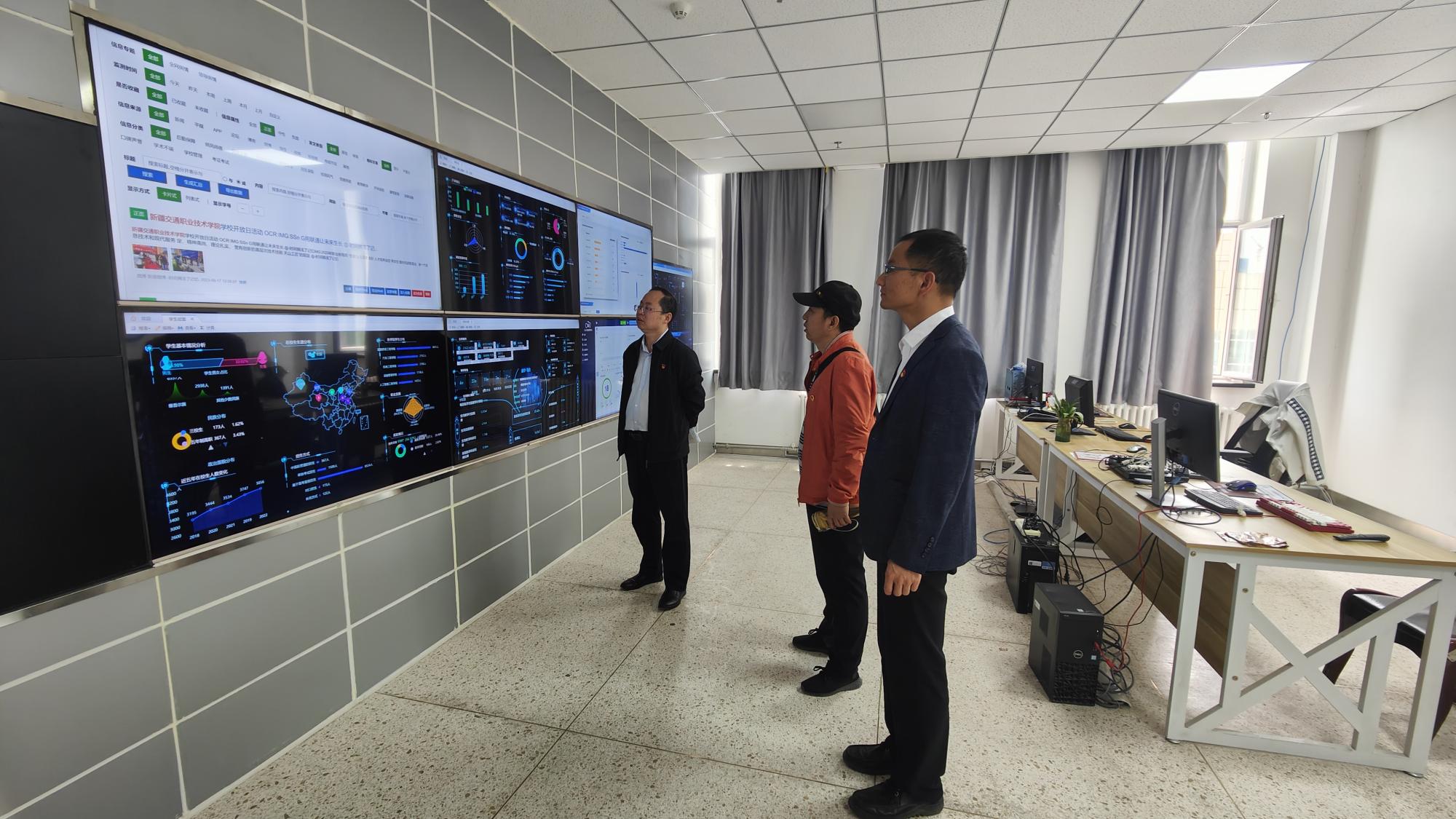 图文信息中心负责人谢之鑫就我院数据分析、数据交换、师生画像、网络安全等方面进行了展示汇报。闫仁清对学院在信息化建设中坚持“用少钱办大事”“让师生少跑腿,让信息多跑路”的成功做法给予了充分肯定与高度赞扬。闫仁清说:“新疆交通职业技术学院取得的信息化成果值得学习与借鉴,希望两校加强交流,分享经验,共创标杆。”