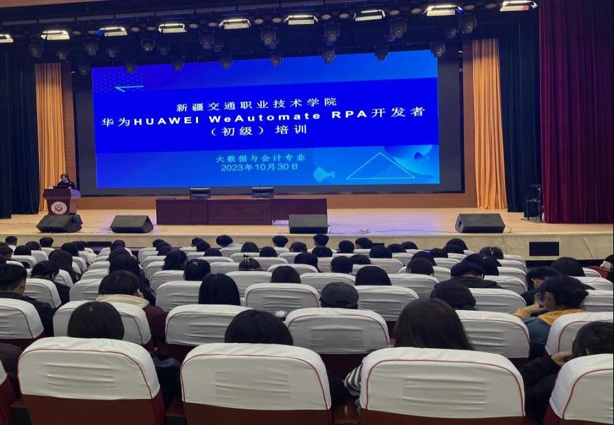 为提升大数据与会计专业的教育质量及学生的专业技能和数字技能,10月31晚,运输管理学院在产教融合楼大礼堂为大数据与会计专业的230名学生开展了“华为WeAutomate RPA开发者(初级)”的取证培训。