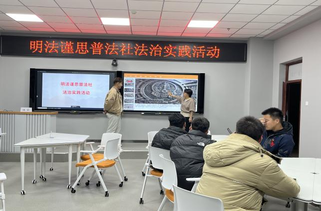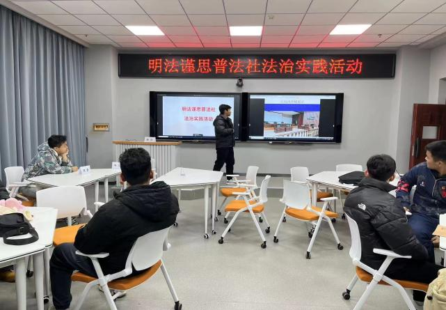 11月28日,马克思学院明法谨思普法社在学院综合楼智慧教室开展“明法悟道”法治实践展示活动。