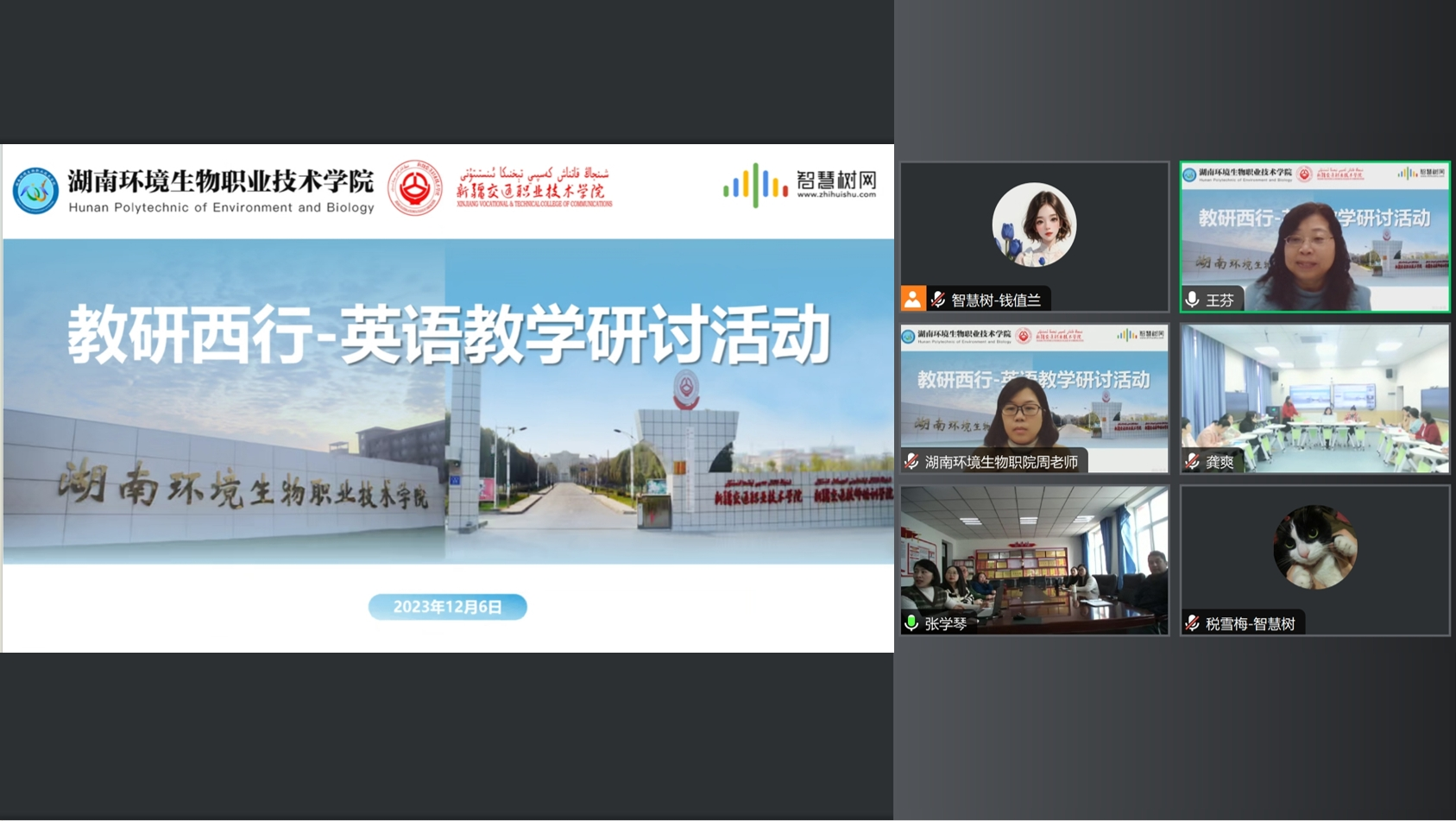 2023年12月6日,人文基础教育学院与湖南环境生物职业技术学院借助腾讯会议平台开展线上英语教学研讨活动。