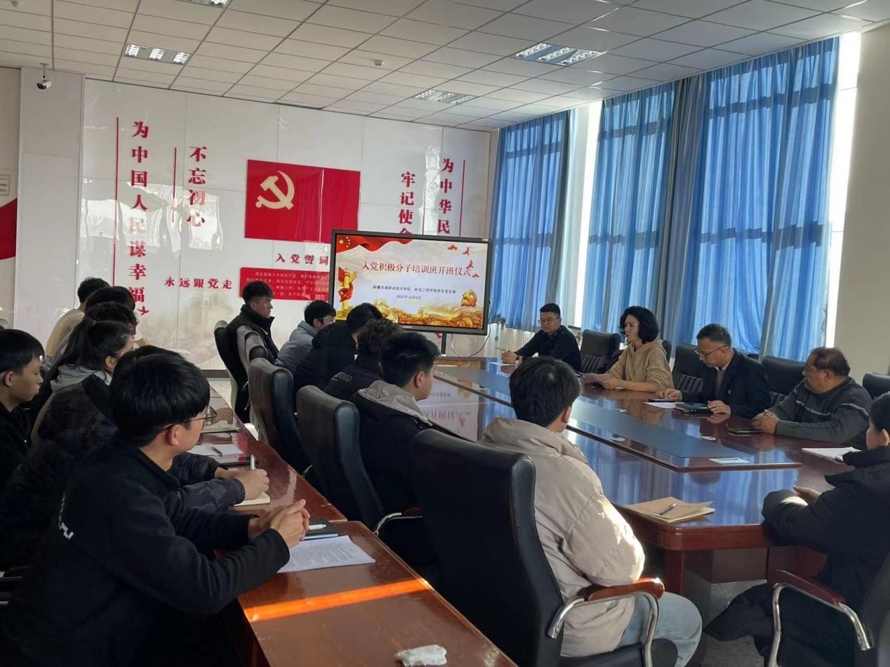 为规范党员发展工作,把好党员“入口关”,保证党员发展质量,12月5日至12月8日,机电工程学院学生党支部举办2023年入党积极分子培训班,分院党总支副书记吐依洪江·肉孜出席开班仪式并讲话,分院34名入党积极分子参加此次培训。