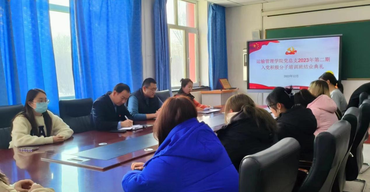12月14日下午, 运输管理学院党总支2023年第二期入党积极分子培训班结业典礼在3号教学楼202会议室举行。运输管理学院党总支书记张军出席结业仪式,会议由运输管理学院学生党支部书记王瑞主持。
