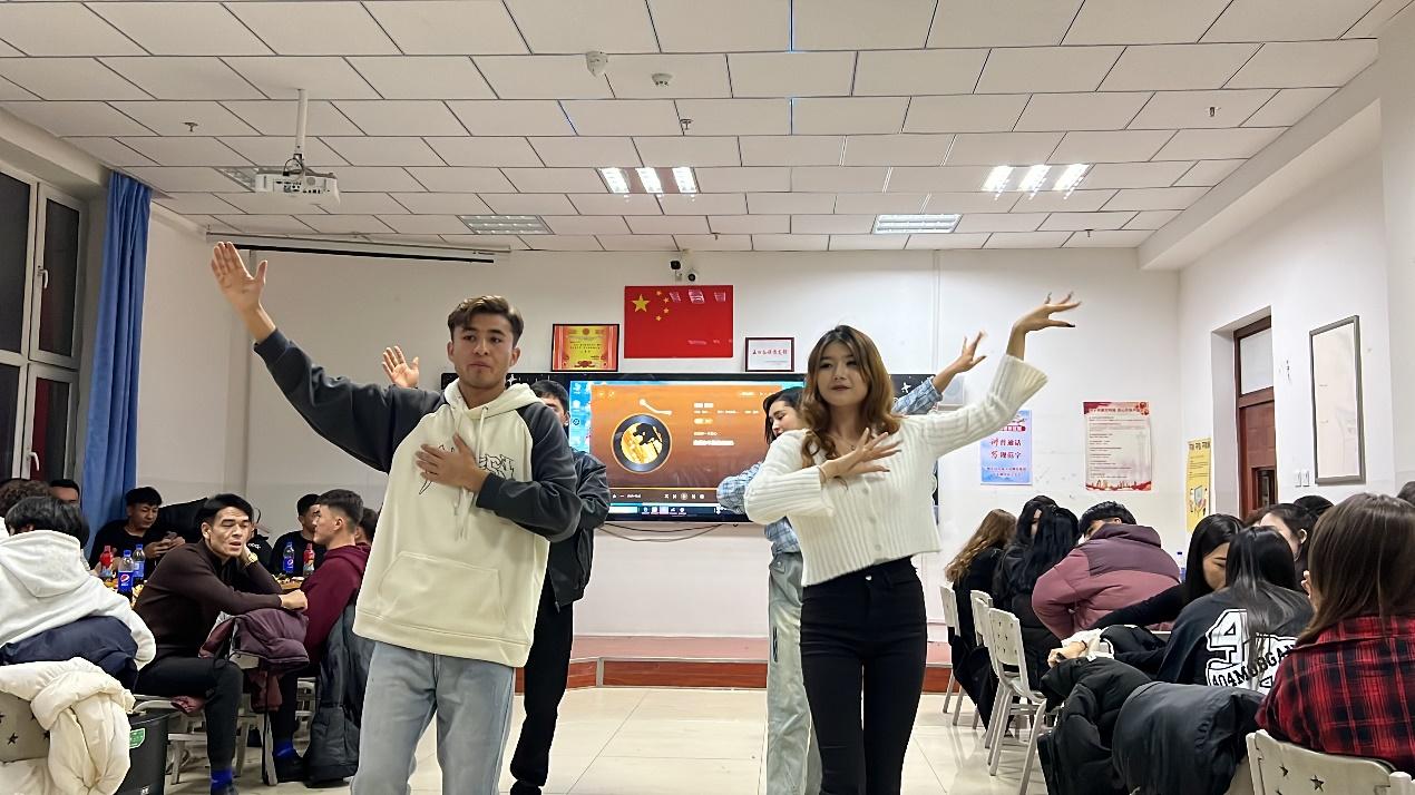 联谊会上,精彩纷呈的歌曲、舞蹈文艺节目,击鼓传花等活跃气氛的互动游戏加深了联谊班级之间的了解,增进同学间友谊,以寓教于乐的方式,感受各民族文化交融共生、和谐发展的美好生活,铸牢中华民族共同体意识,坚定理想信念,共建美好生活。