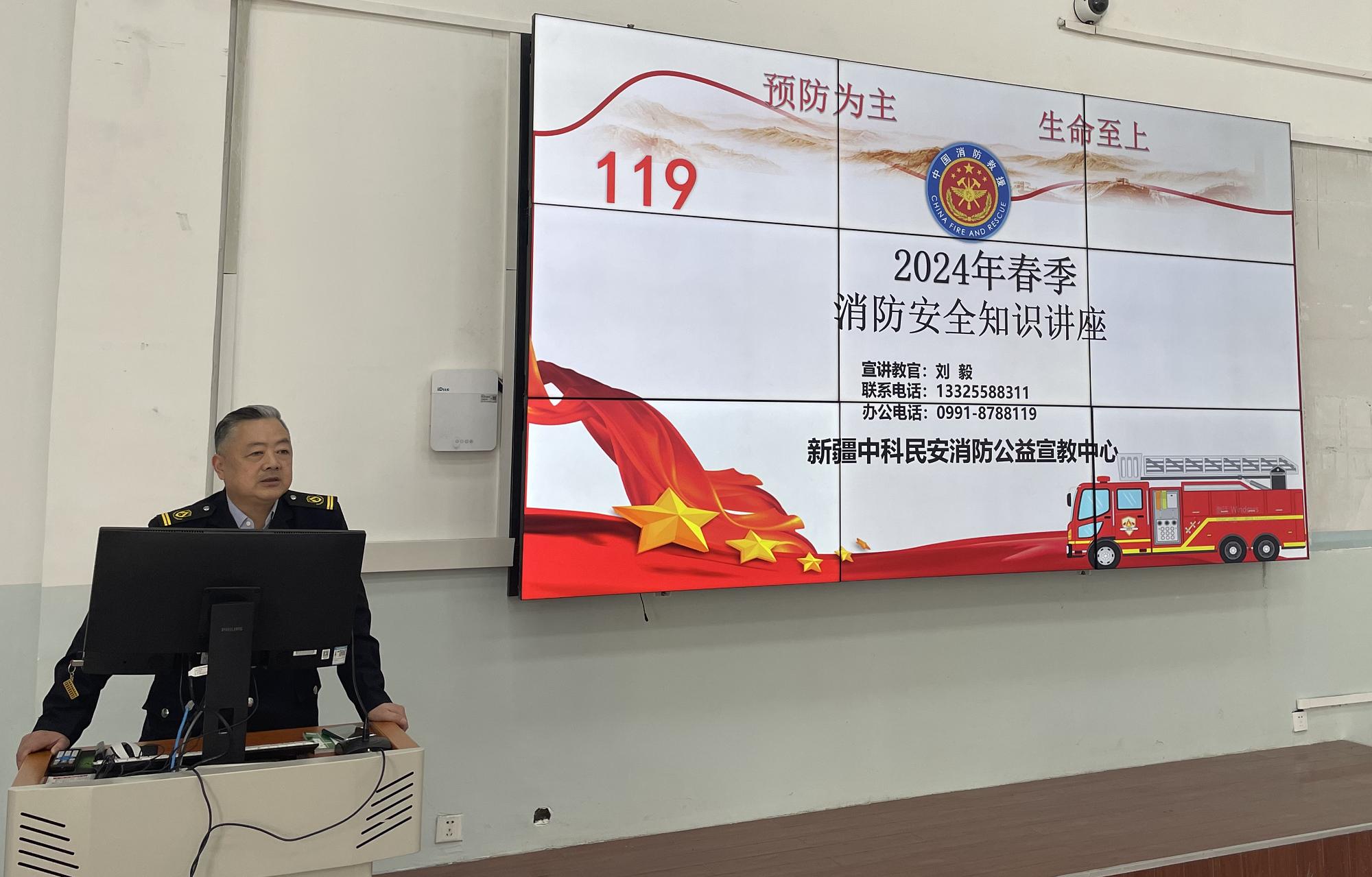 为了加强后勤服务中心消防安全,提高部门职工的消防安全防范意识,做到从根本消除校园消防安全隐患,4月8日下午,后勤服务中心邀请乌鲁木齐中科民安消防公益消防宣教中心特级教员刘毅来我中心开展了消防培训讲座.。后勤服务中心职工100余人参加。
