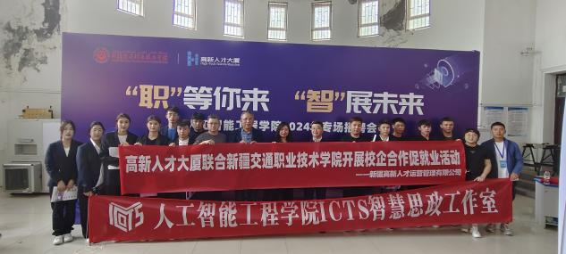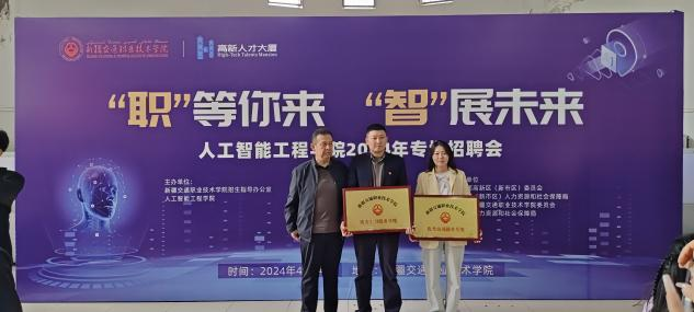4月24日,由人工智能工程学院、学院招生就业指导办公室主办,乌鲁木齐高端人才创新创业服务中心、新疆高新人才运营管理有限公司、ICTS智慧思政工作室、人工智能工程学院职业生涯规划与就业指导协会承办,共青团新疆交通职业技术学院委员会、高新区(新市区)、米东区人力资源和社会保障局协办的“职”等你来· “智”展未来——2024年专场招聘会成功举办!