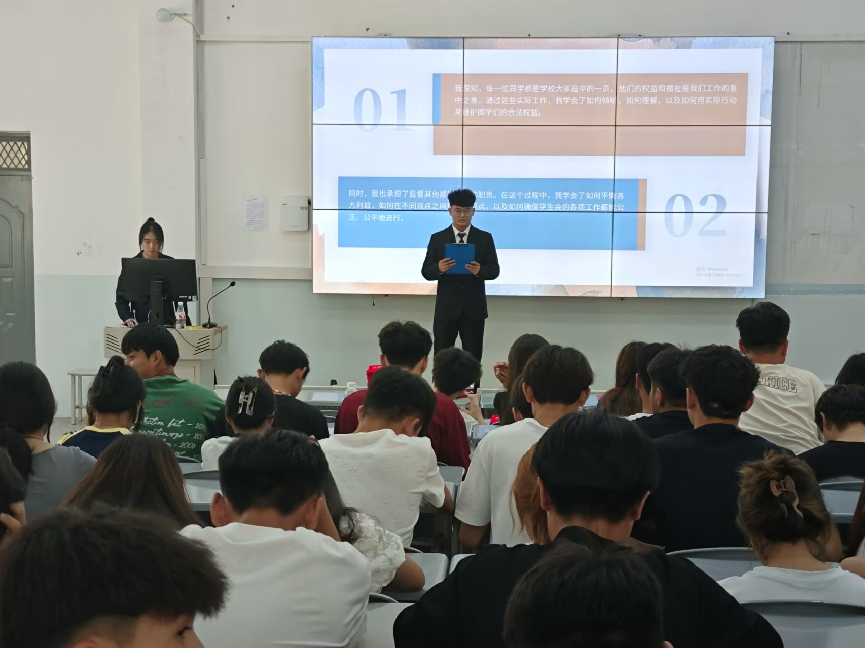在竞选环节中,参选学生满怀信心和激情,以端庄大方的仪态和饱满的精神状态展示自我,从自我介绍、岗位认知、竞选原因以及工作设想等方面开展演讲。慷慨激昂的演讲将竞选活动一次次推向高潮,赢得了大家热烈的掌声。经过评审组的综合评议,最终明确了汽车工程学院2024年度学生会各部门负责人。