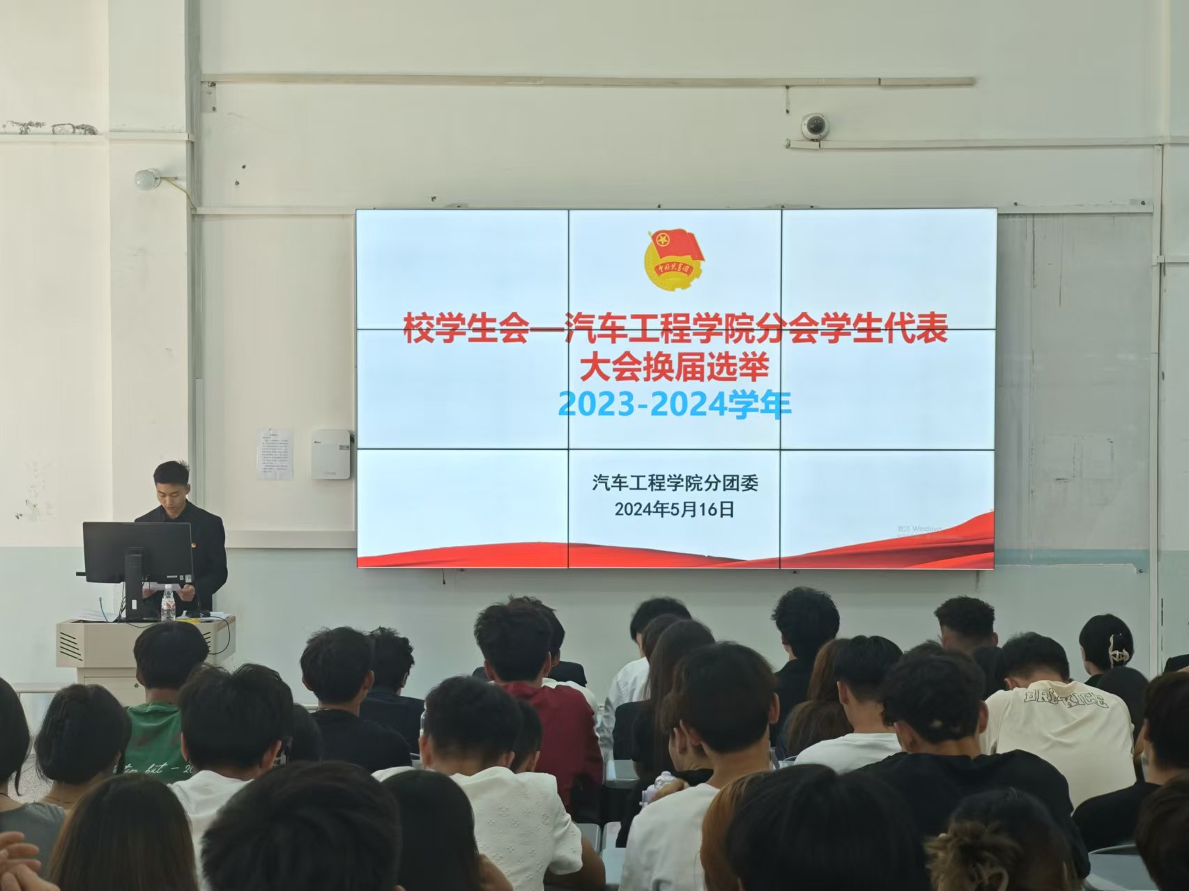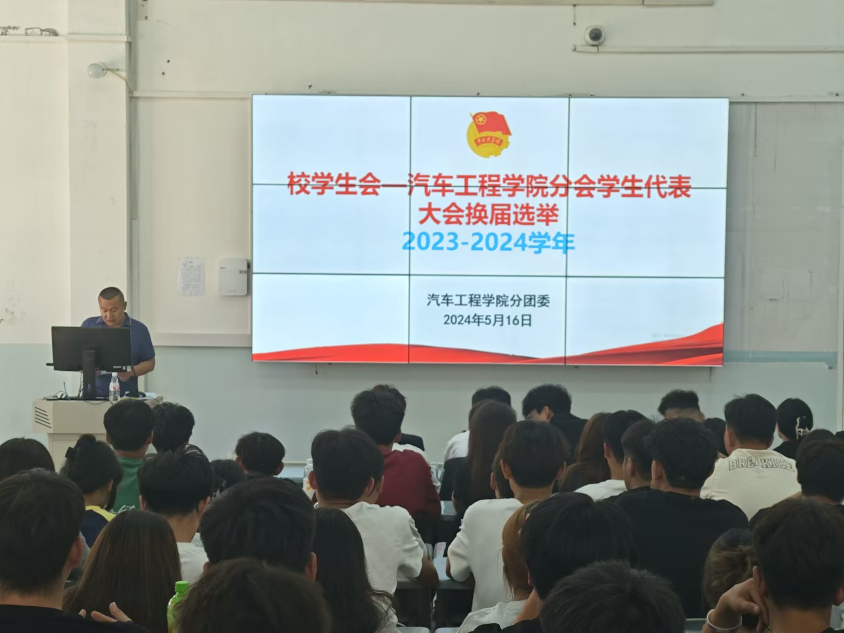 5月18日下午,汽车工程学院在四号教学楼一楼阶梯教室召开2024年度学生代表大会。学生党支部书记刘玉宝、学生会各部门负责人、各班级学生代表及全体学生会工作人员共计160余人参加会议。会议由2023届学生会主席团成员孙秀山主持。