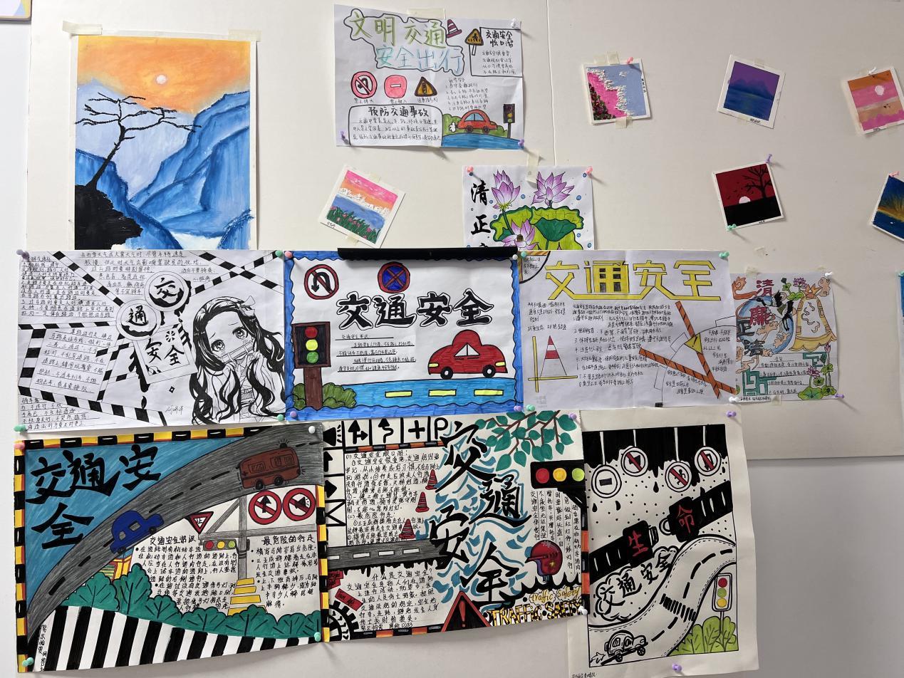 活动期间,人工智能工程学院各班团支部积极行动,充分发挥想象力和创造力,用手中的画笔描绘出了一幅幅主题鲜明、内容丰富、形式多样的手抄报。这些手抄报涵盖了“交通安全”“交通强国”“丝路交通” 等主题。手抄报展不仅体现了同学们扎实的绘画功底,更展现了他们对科学知识的热爱和追求。手抄报展示在综合教学楼各班级及 11 号公寓“一站式”学生社区,吸引众多同学驻足观看。