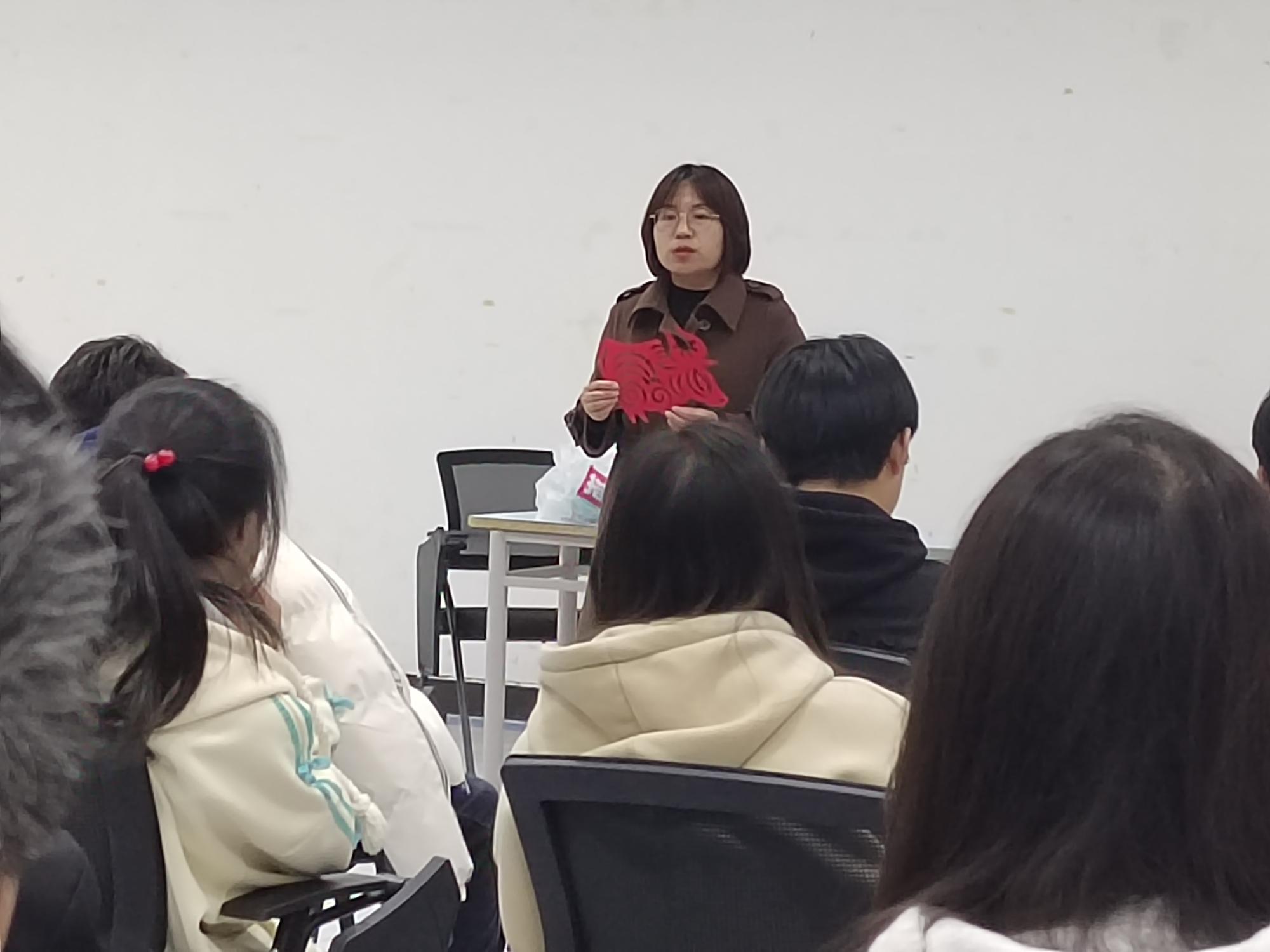 活动开始,社团老师为社员们详细讲解了剪纸艺术的由来,分享了传统剪纸技艺,并带领大家共同观看了剪纸教程。她表示剪纸是最古老的中国民间艺术之一,作为一种镂空艺术,它在视觉上给人一种透空的感觉和艺术的享受,希望同学们感受其独特的艺术魅力和丰富的文化内涵,让传统文化在新时代绽放更加绚烂的光彩。