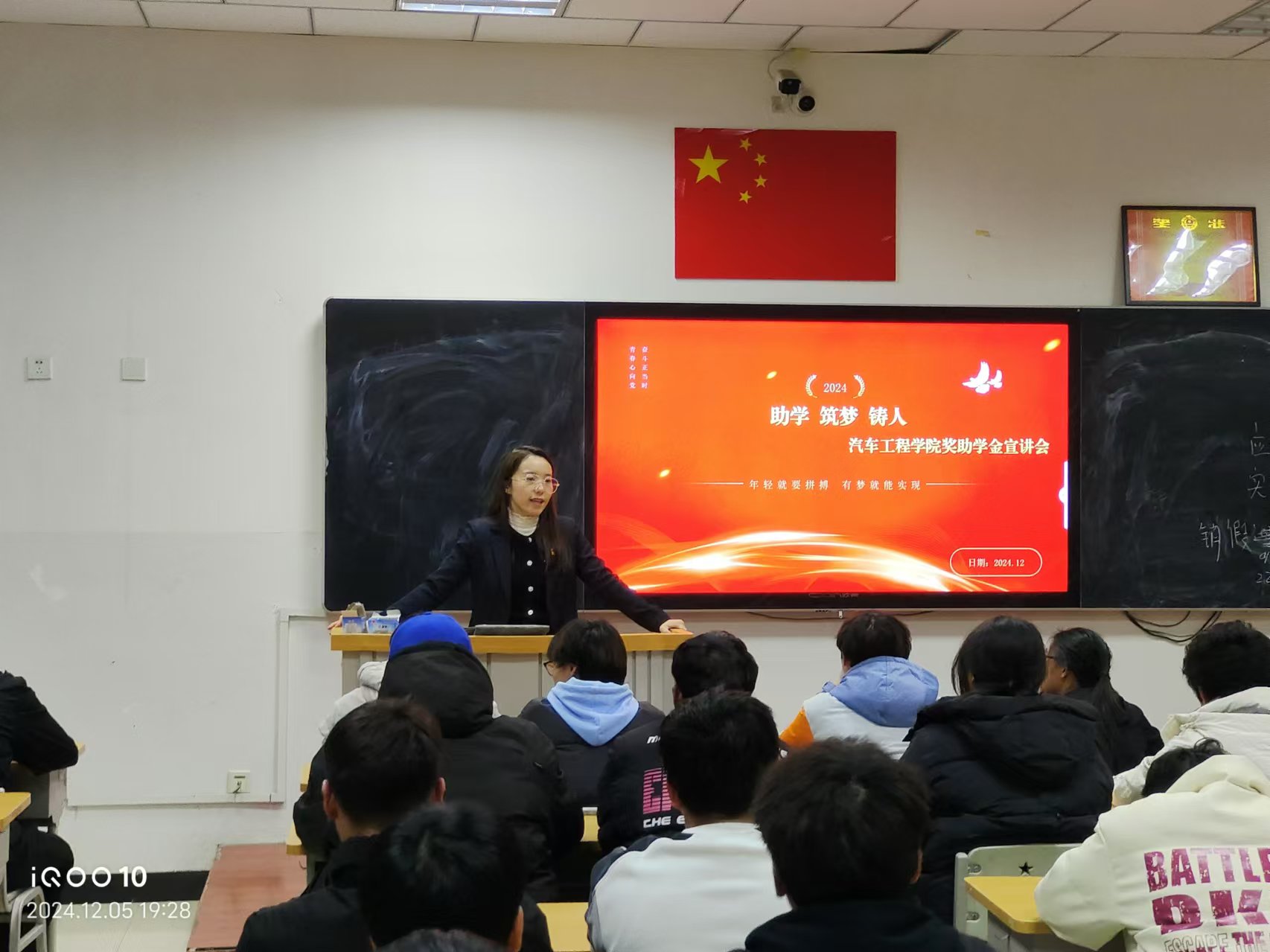 汽车工程学院开展“助学 筑梦 铸人”奖助学金宣讲会