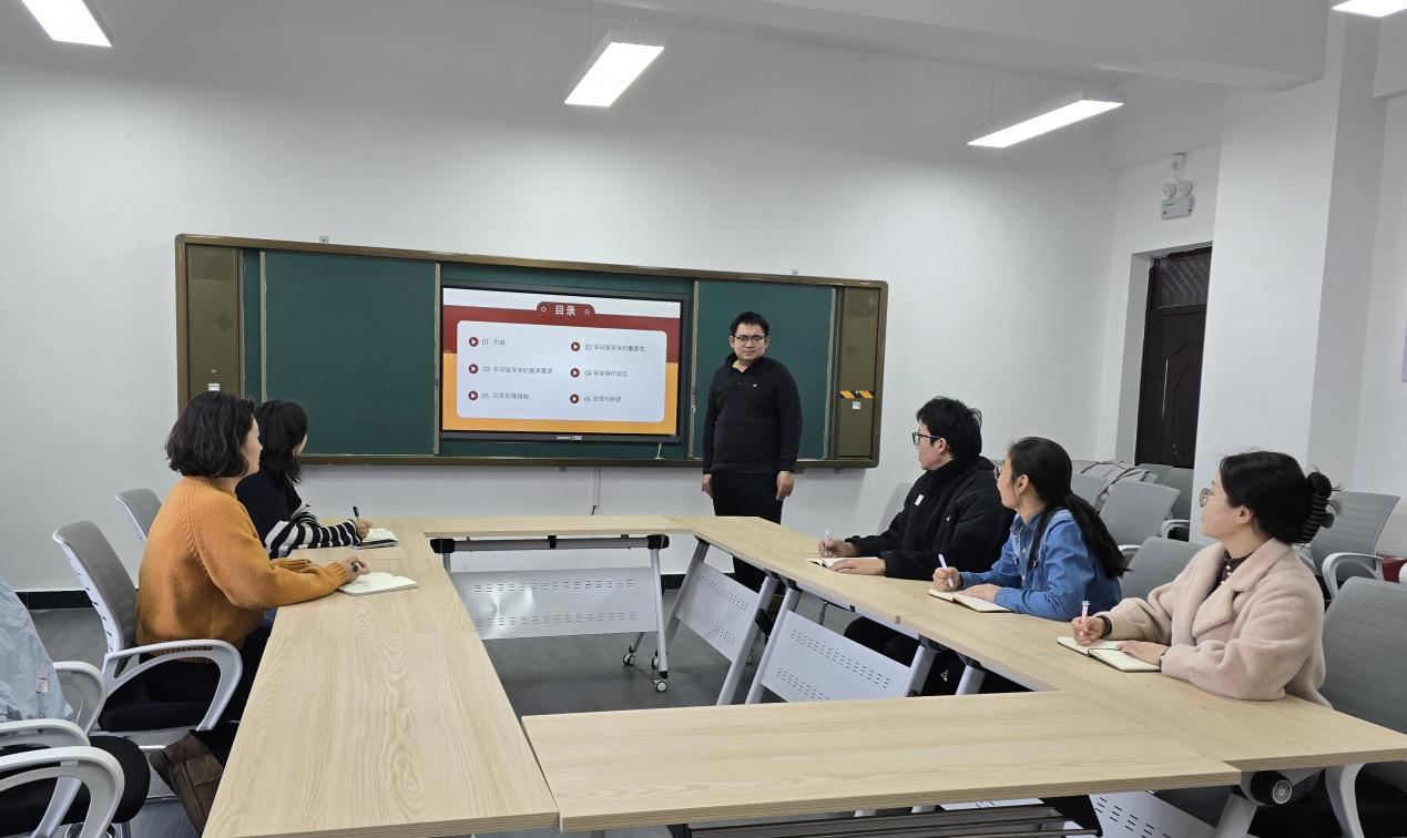 实训中心主任董晋老师结合自身丰富的实训管理经验,从实训室安全基本要求、常见安全隐患及案例分析、实训室安全管理指南三个方面进行了详细讲解。董老师深入浅出地阐述了实训室安全的重要性,并结合近期高校发生的实训室安全事故案例,分析了事故原因,强调了规范操作、预防为主的安全理念。