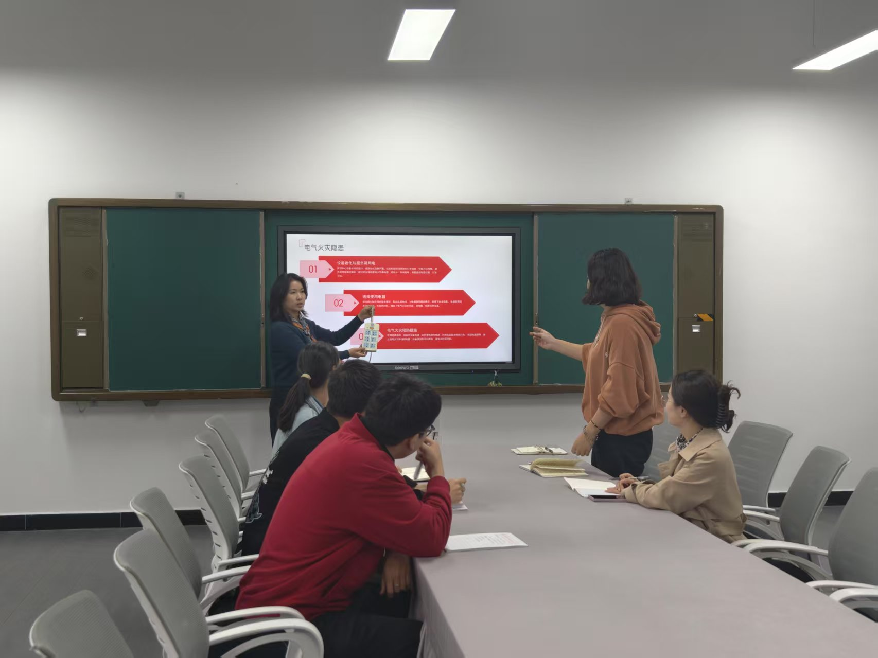 培训中,运输管理学院实训中心老师马燕系统剖析了实训室火灾隐患,重点讲解了防火安全规范、火灾应急处理流程及管理制度。通过对某高职院校实训中心因设备老化、强调了超负荷用电引发火灾的案例的分析,提高师生的安全意识和应急处置能力,师生自觉遵守防火安全制度,共同维护实训中心安全。对实训室定期进行巡检,及时检查电器设备,避免出现线路老化问题,规范学生操作,纠正插线板串联、大功率设备违规使用现象,细化管理制度,定期组织应急演练。