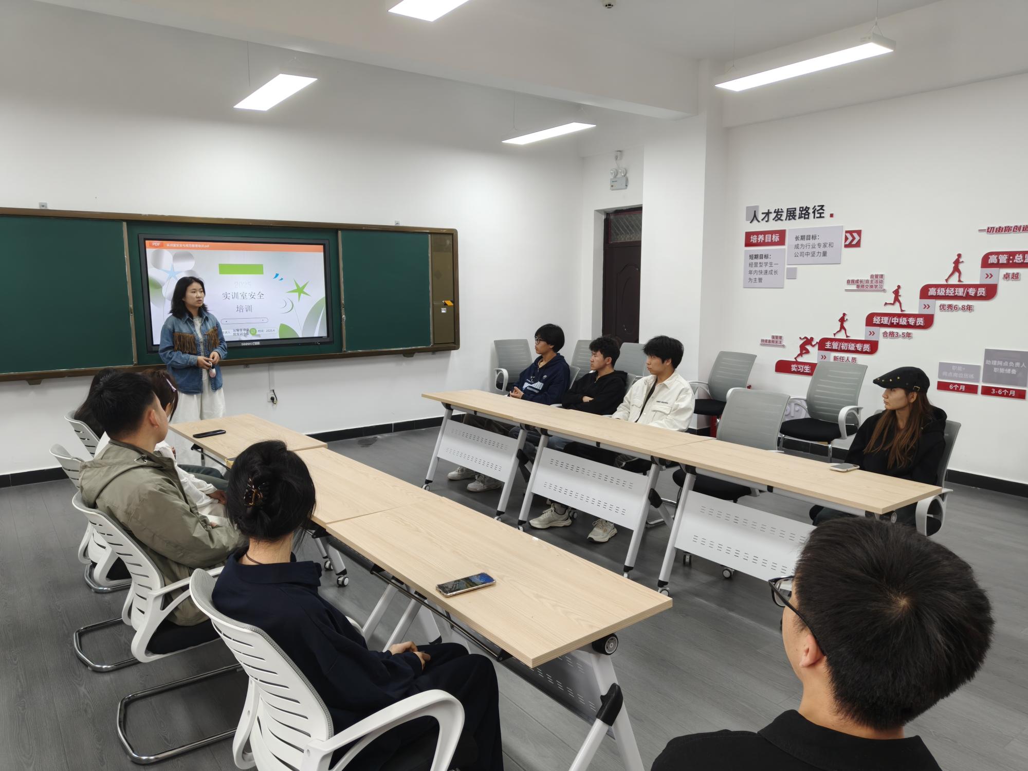 为加强实训室安全管理,提升师生安全防范意识,营造安全稳定的校园环境,5月12日,运输管理学院实训中心在实训楼109教室,组织2024级学生代表开展实训室安全专题教育培训。