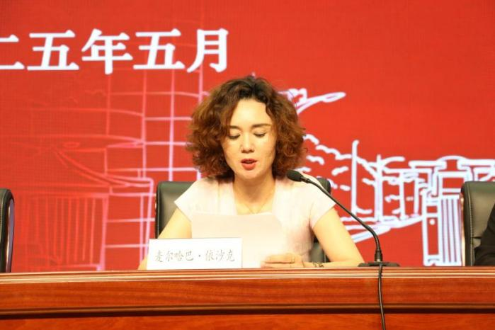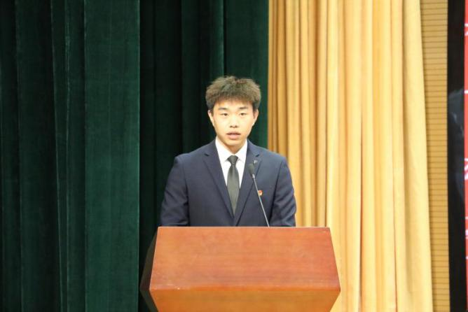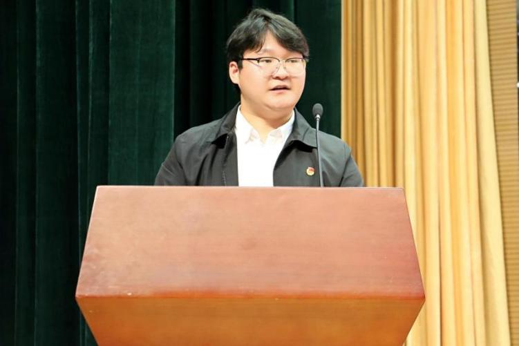 机电工程学院分团委书记麦尔哈巴向大会致辞,勉励全院学生干部要坚持优良作风,不忘服务初心,牢记总书记“做青年友,不做青年官”的殷切嘱托,不断提高自身,开创分院学生工作新局面。