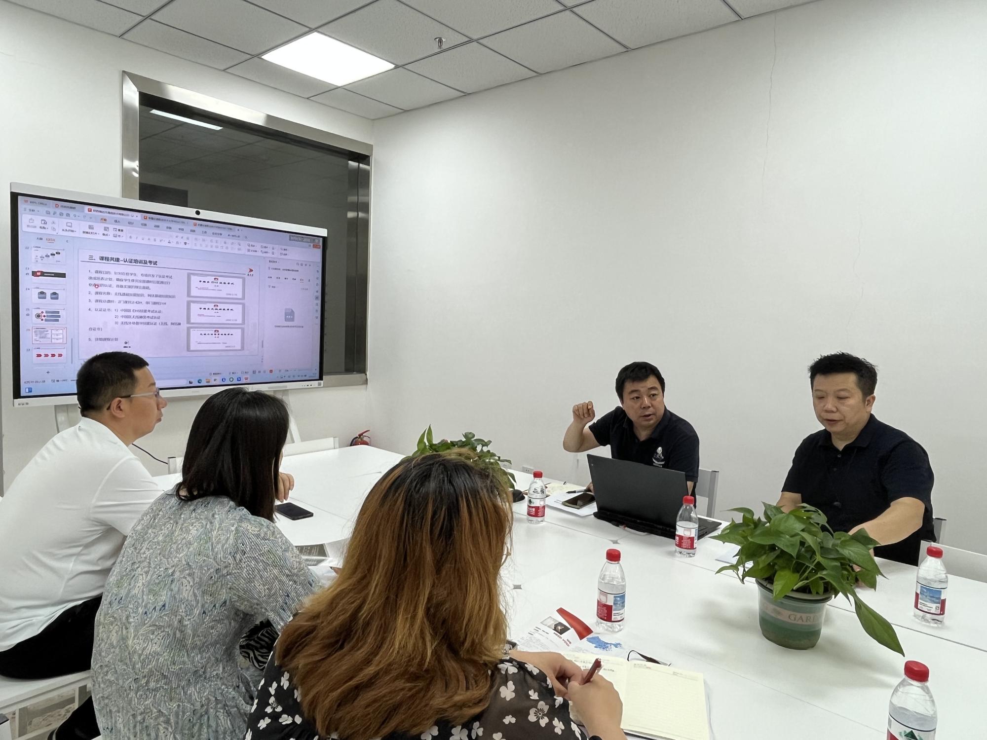 座谈交流环节,校企双方围绕校企合作协同育人、人才培养方案优化企业人才定向培养、企业岗前培训前置、项目式与情景式教学网络搭建、学生实习就业指导等维度展开。校企双方各抒己见,积极交换意见在交流中不断碰撞出合作的火花,达成了广泛共识,为后续合作奠定了坚实基础。