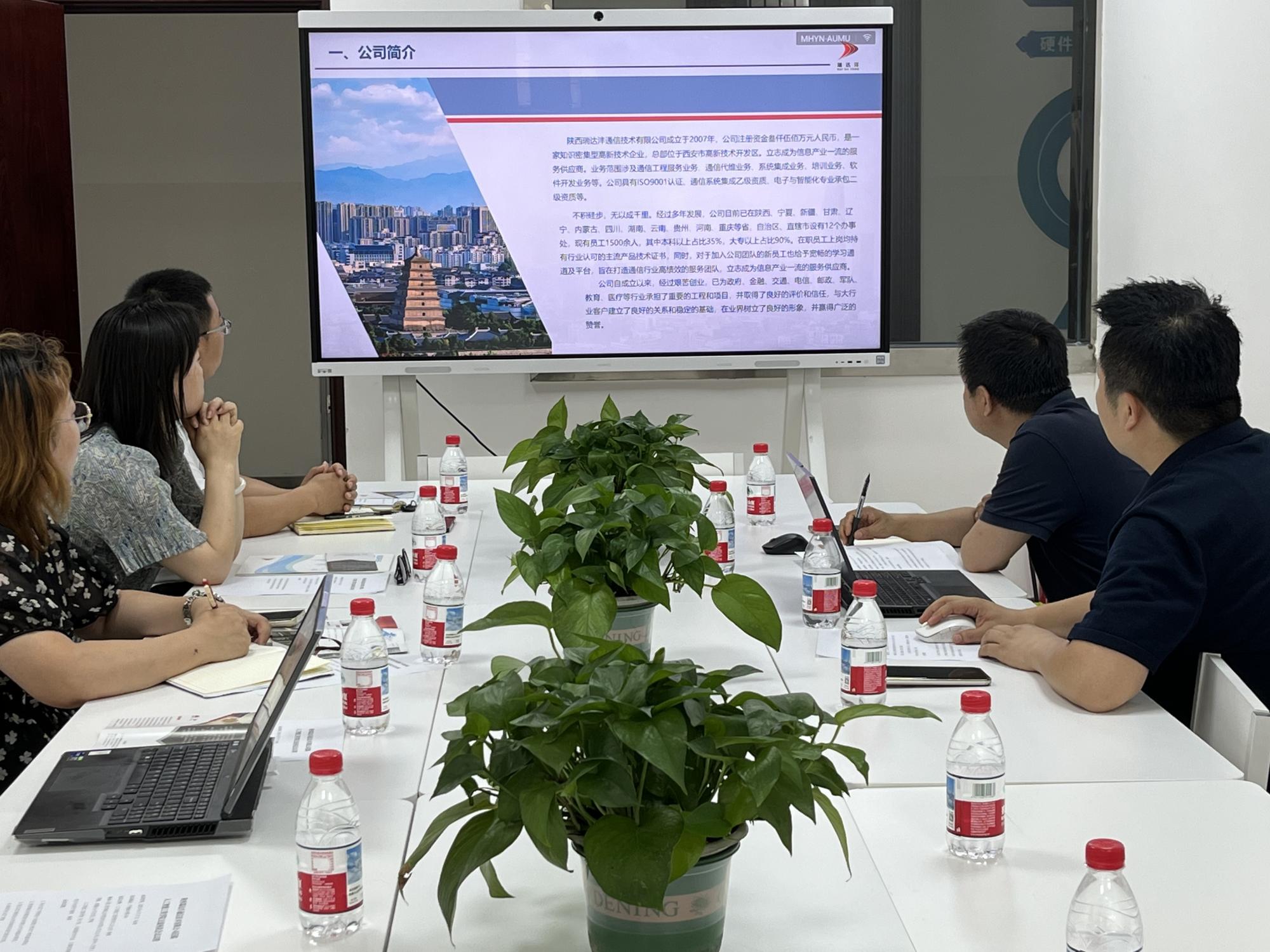 随后,陕西瑞达沣通信技术有限公司总公司人资中心负责人贺毅经理介绍了公司的基本情况,分享了公司的发展历程、业务范围、市场布局、核心技术、业务聚焦、招聘岗位,以及校企合作模式,展现出公司在ICT技术领域的专业实力与广阔前景,也让学院教师对企业的需求和校企合作着力点有了进一步了解。