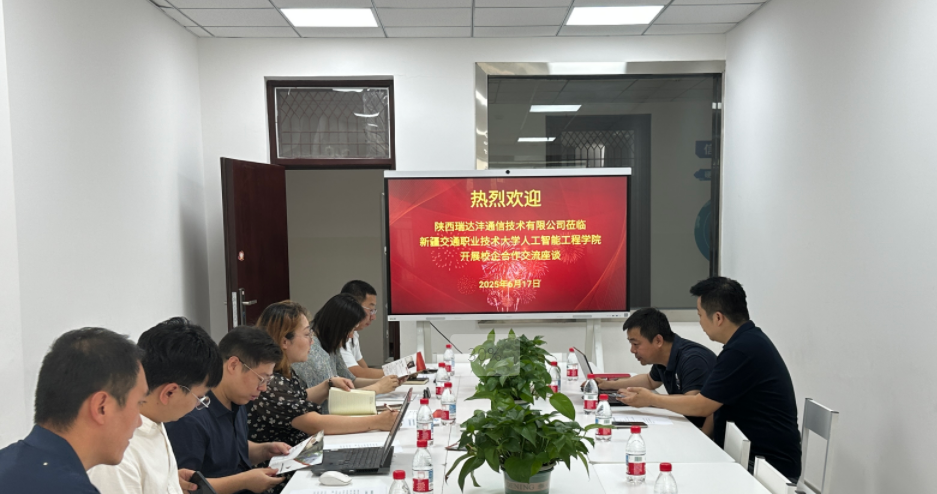 为进一步深化产教融合,推动校企协同育人,切实提升学生实习就业质量,6月17日下午,陕西瑞达沣通信技术有限公司总公司人资中心负责人贺毅、新疆分公司负责人罗纲一行莅临人工智能工程学院和华为ICT学院,校企双方在产教融合楼416开展了交流座谈。此次会议由人工智能工程学院学工办主任杨娟主持,华为ICT学院运营经理赵小龙、大数据技术专业负责人严小红及骨干教师、计算机网络技术专业骨干教师等参加了此次座谈。