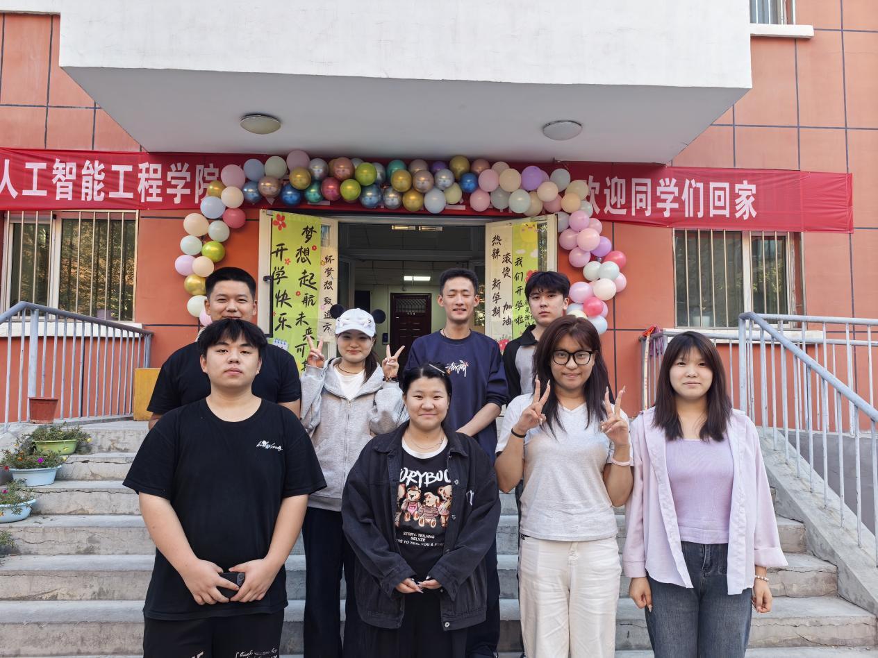 除了气球装饰,公寓门口还悬挂起了 “人工智能工程学院欢迎同学们回家”条幅,鲜艳夺目,传递出浓浓的关怀与期待。同时,公寓内也张贴了“梦想起航未来可期”“新学期新舞台” 等充满鼓励与祝福的标语,让同学们一踏入公寓,就能感受到学院的温暖与用心。
