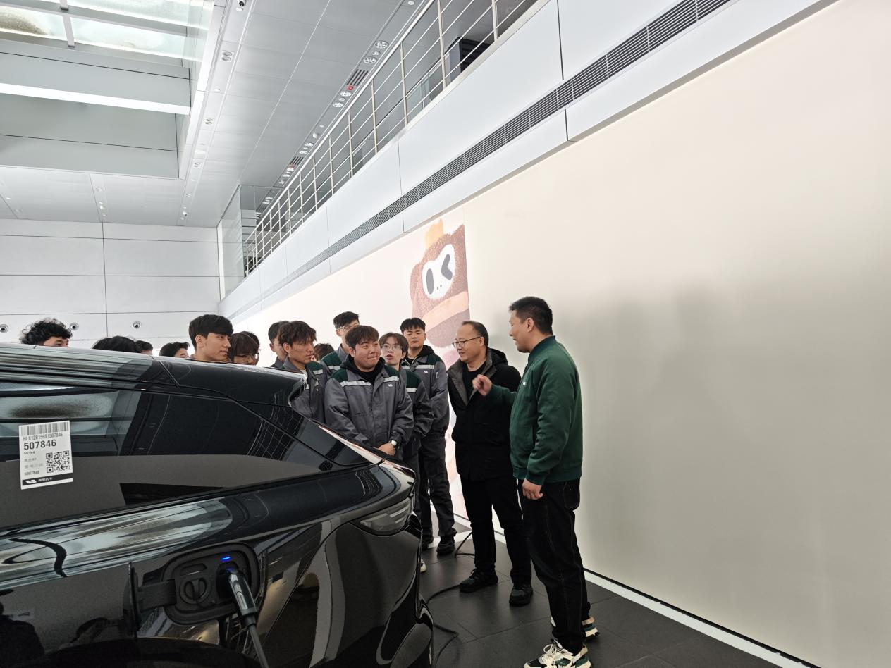 活动中,同学们在理想汽车售后服务中心吴勇店长的引导下,依次参观了维修接待环检区、客户休息区、维修作业区等核心区域,通过实地观摩与吴店长的细致讲解,深入了解了售后服务全流程的标准规范与企业理念,直观感受到了理想汽车严谨高效的工作作风,对未来职业场景的期待感进一步增强。