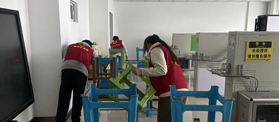 核心实践环节中,100名受助学生组成志愿服务队,有序开展人工智能工程学院实训室专项清洁工作。学生们提前学习实训室设备清洁规范,整个清洁过程中,学生们协作高效、认真细致,用实际行动回馈学院关怀,让实训环境焕然一新。
