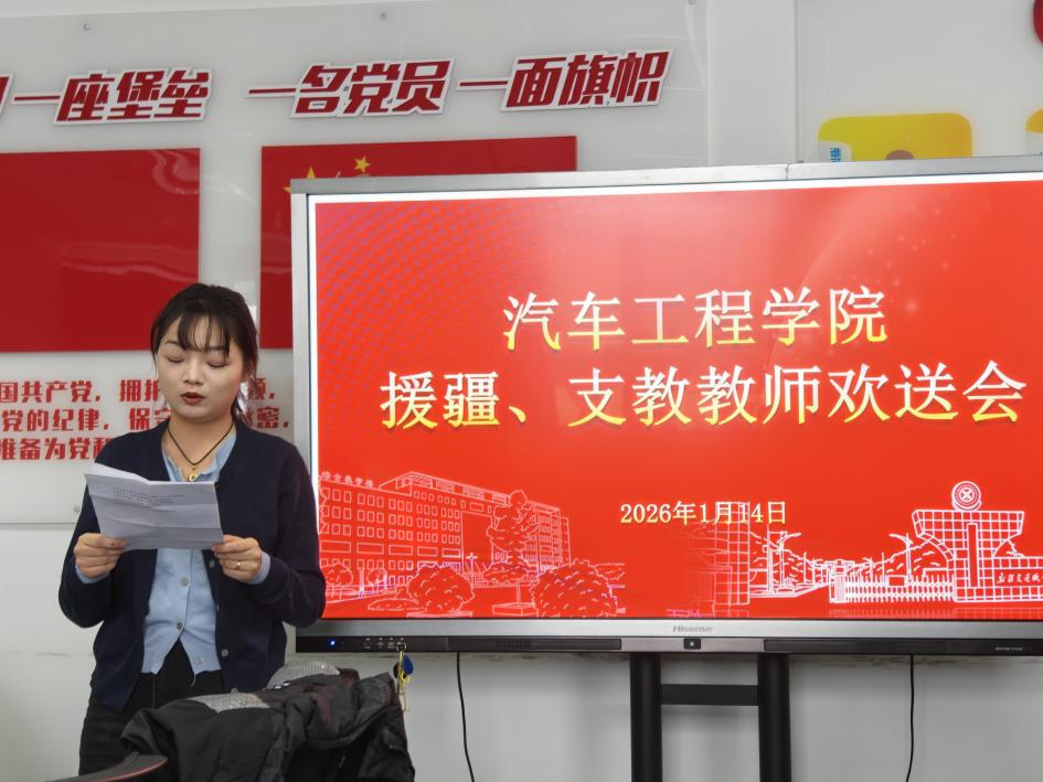 114日下午,汽车工程学院召开援疆、支教教师欢送会会议由学院副院长董静主持。