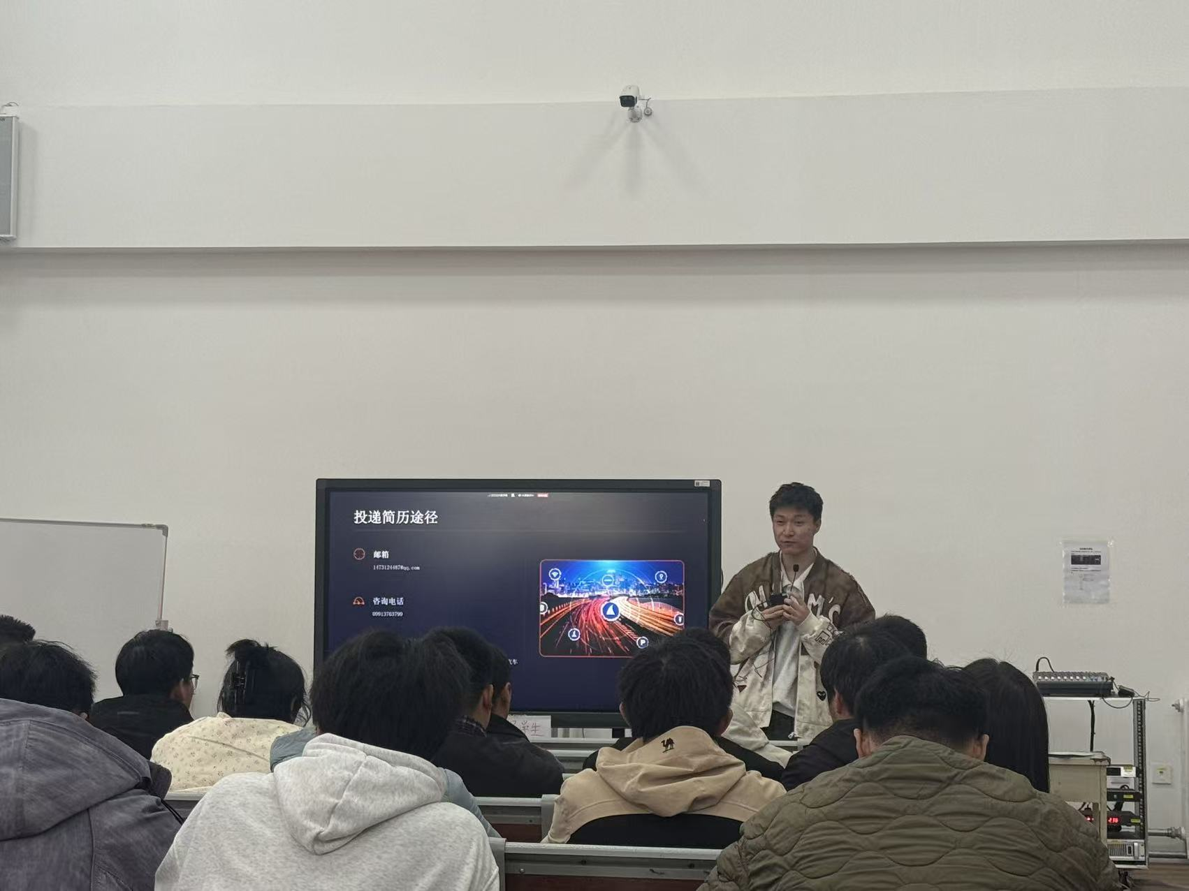 随后,新疆市政轨道交通有限公司人力资源部部长周静带队到访。宣讲会上,周静部长围绕公司发展历程、企业文化、核心业务、岗位需求及员工职业发展路径进行详细解读,让在场学生全面了解企业发展前景和招聘要求。期间,学院养护D231班优秀实习生虎明杰分享了2025年在该公司的实习经历,从岗位适应、技能提升、团队协作等方面,用真实案例为学弟学妹提供了实用的实习及求职参考;道桥D081班优秀校友刘红霞结合自身在企业的成长轨迹,分享了从校园走向职场的心得体会,勉励学弟学妹们夯实专业基础,勇于担当作为,并诚挚邀请大家加入公司,在市政交通领域实现人生价值。
